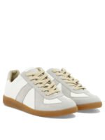 Ces baskets signées Maison Margiela reflètent parfaitement l’esthétique minimaliste et conceptuelle de la maison. Réalisées en cuir de vachette souple, elles se distinguent par leurs lignes épurées et leur semelle en caoutchouc robuste, assurant confort et durabilité. Polyvalentes et élégantes, elles s’associent aussi bien à un pantalon tailleur qu’à un jean décontracté, incarnant le parfait équilibre entre design avant-gardiste et raffinement discret.