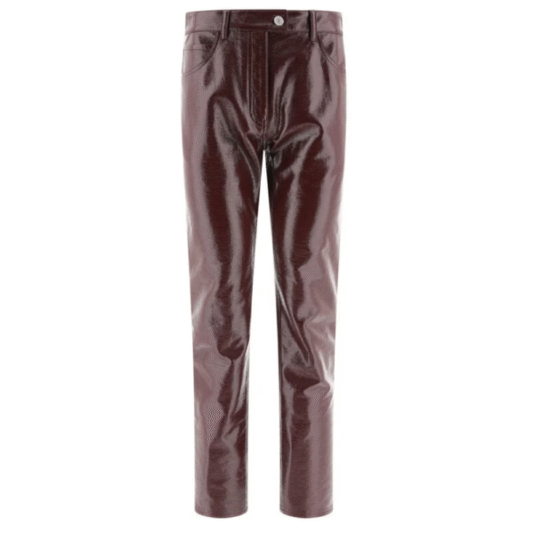 « Courrèges » pantalon femme bordeaux en coton vinyle coupe slim taille haute