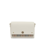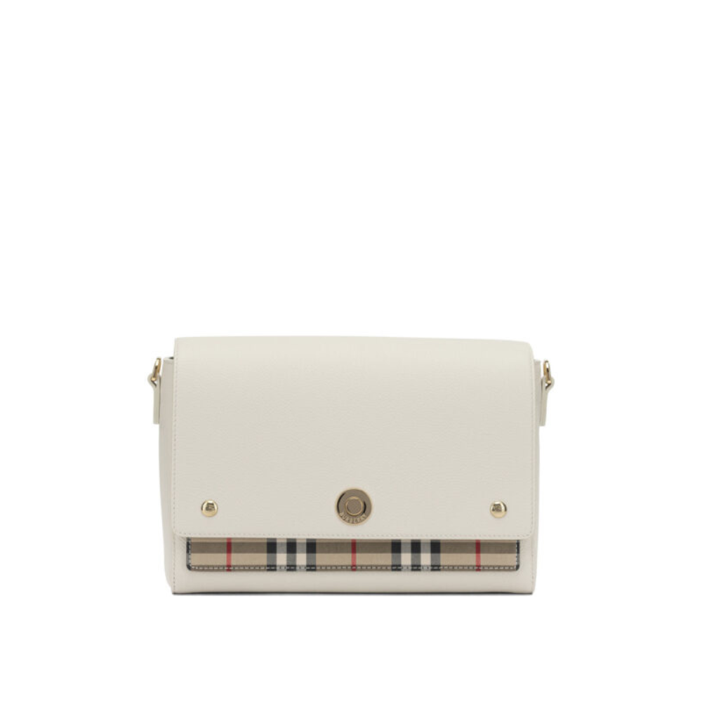 ce sac de la maison burberry pour femme est une pièce de maroquinerie au design iconique et structuré conçue pour la saison printemps-été 2026. fabriqué en italie, il est confectionné dans une alliance de cuir de veau de première qualité (100 %) et de toile de coton arborant le célèbre motif burberry check, offrant une structure rigide, une grande durabilité et une esthétique héritage reconnaissable entre toutes. sa silhouette se distingue par un format compact « note » aux lignes nettes et des bords peints à la main, alliant l’élégance britannique traditionnelle à une fonctionnalité urbaine contemporaine. le design au coloris blanc présente une construction soignée avec une fermeture magnétique à rabat ornée d’un élément métallique poli gravé du logo. la structure inclut une bandoulière en ruban réglable (hauteur de 39 cm à 59 cm) pour un porté personnalisé, une poche extérieure plaquée ainsi qu’une doublure intégrale en coton avec subdivision en enveloppe pour organiser vos essentiels. ce modèle allie parfaitement la noblesse des cuirs de luxe à l’imprimé signature de la marque, constituant un accessoire de prestige pour votre vestiaire de saison.