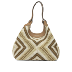 caractéristique spéciale : construction mixte associant la rusticité chic du papier tressé à la noblesse du cuir italien, créant un contraste de matières sophistiqué emblématique de la marque