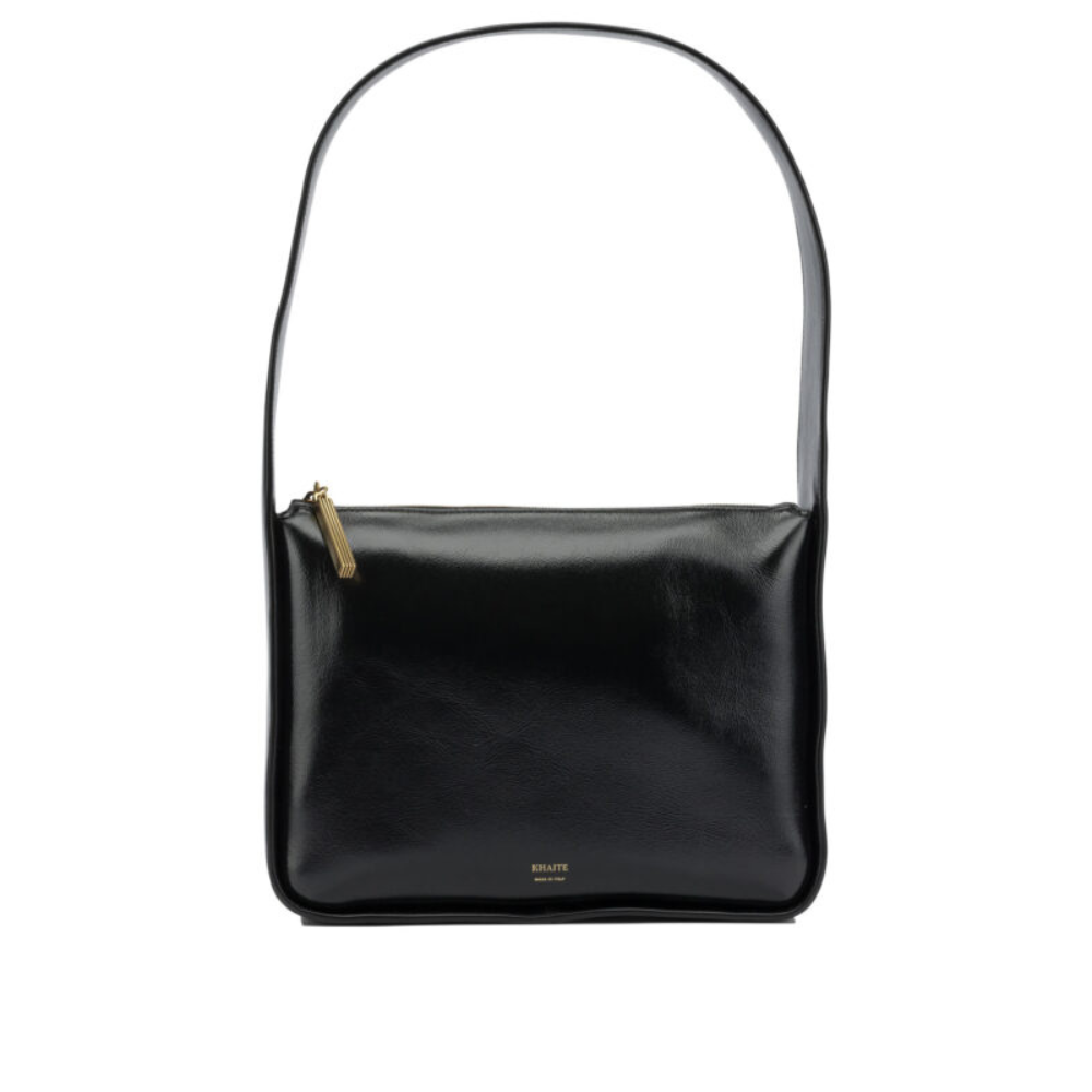 cette pièce de la maison khaite pour femme est un accessoire de maroquinerie au design architectural et minimaliste conçu pour la saison printemps-été 2026. fabriquée en italie, elle est intégralement confectionnée dans un cuir de veau poli de première qualité (100 %), recouvert d’une couche transparente qui lui confère une surface hautement réfléchissante, offrant une structure compacte, une main lisse et une brillance exceptionnelle propre aux standards de la haute manufacture italienne khaite. sa silhouette « lory squared » se distingue par sa forme rectangulaire nette et ses finitions métalliques en laiton plaqué or 18 carats, alliant l’esthétique contemporaine et luxueuse de la griffe à une fonctionnalité idéale pour vos accessoires de prestige. le design au coloris noir présente une construction soignée avec une fermeture zippée supérieure, signature du prestige et de l’identité visuelle de la maison khaite axée sur la pureté des lignes et la noblesse des matériaux. la structure inclut une anse ergonomique et une pochette intérieure intégrée, garantissant une silhouette équilibrée, une grande liberté de mouvement et un confort de porter exemplaire. ce modèle allie parfaitement la préciosité d’une peausserie sélectionnée à une ingénierie de design de luxe, constituant une pièce de collection indispensable pour votre vestiaire.