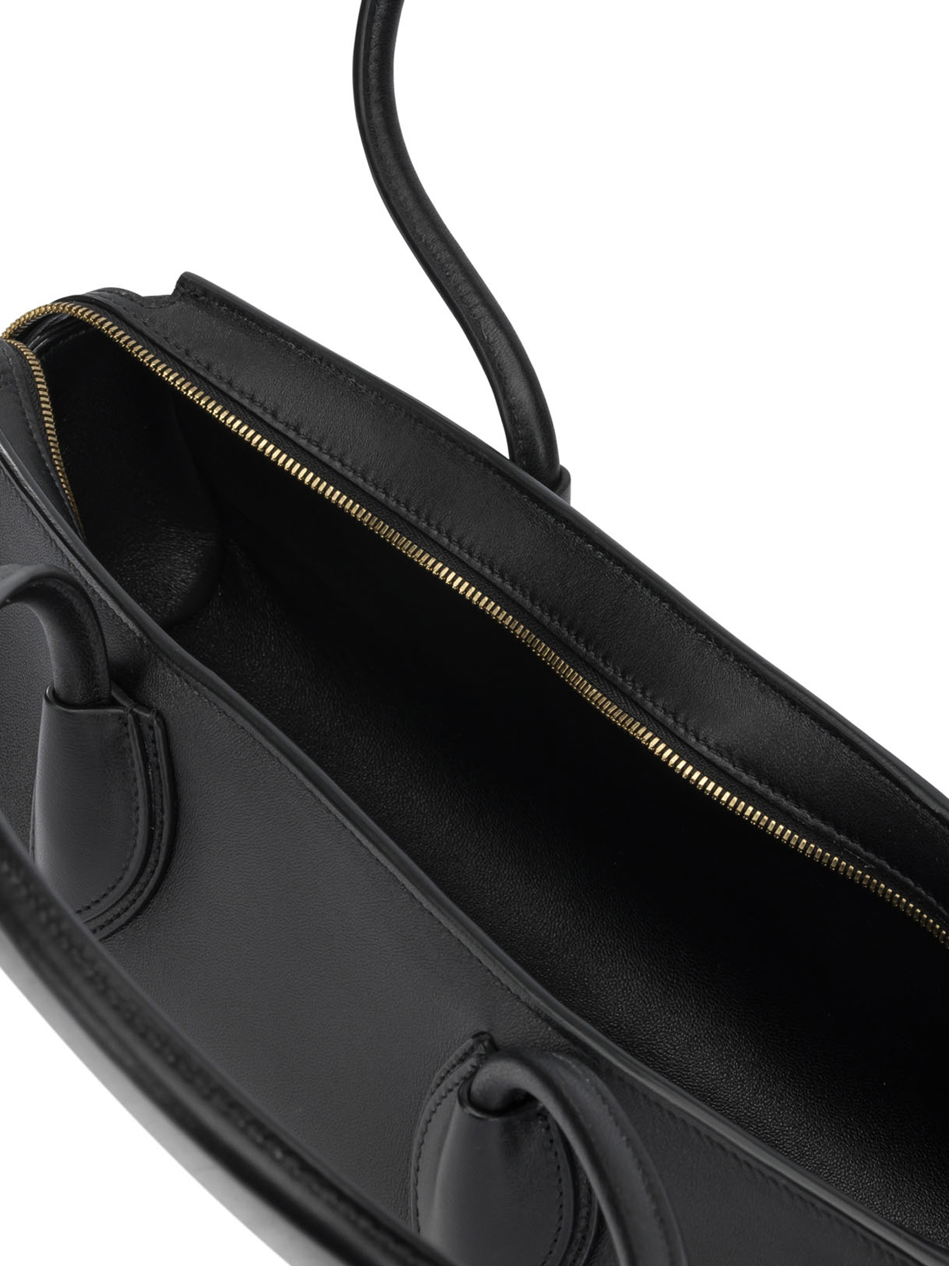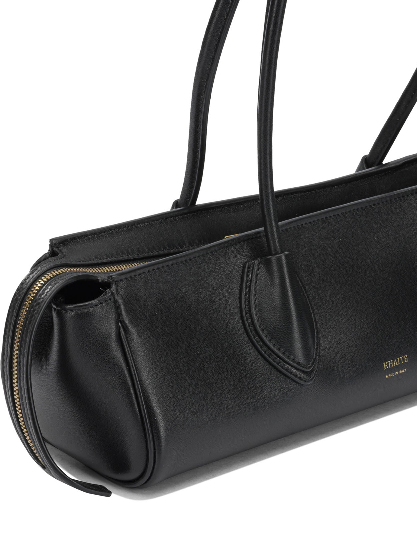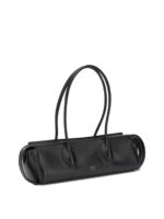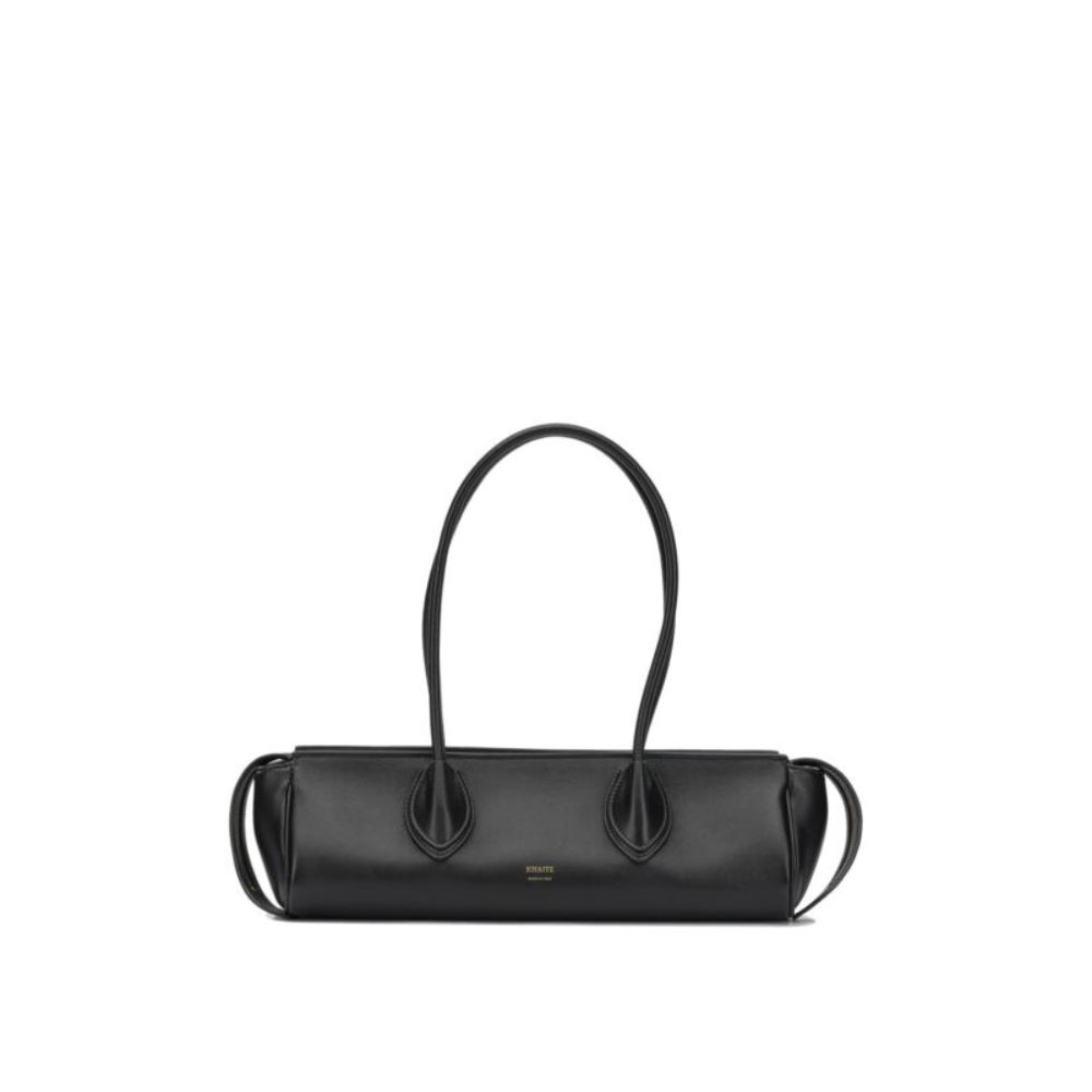 ce sac d’épaule de la maison khaite pour femme est une pièce de maroquinerie au design architectural et sculptural conçue pour la saison printemps-été 2026. fabriqué en italie, il est intégralement confectionné dans un cuir nappa d’agneau de première qualité (100 %), offrant une structure d’une extrême souplesse, un toucher soyeux et une légèreté propre aux standards de la haute manufacture de luxe. sa silhouette se distingue par une ligne allongée « east-west » et une construction complexe par panneaux et soufflets, alliant l’esthétique minimaliste et audacieuse de la griffe à une sophistication moderne idéale pour vos accessoires de prestige. le design au coloris noir profond présente une construction soignée avec des anses tubulaires doubles positionnées latéralement, signature du prestige et de l’identité visuelle de khaite. la structure inclut une fermeture à double glissière, des détails métalliques en laiton dont l’élément décoratif empire, et une hauteur d’anse de 19,1 cm, garantissant un porté main ou épaule polyvalent et une finition luxueuse exemplaire. ce modèle allie parfaitement la noblesse d’une peau d’exception à une ingénierie de design contemporain, constituant une pièce maîtresse pour votre vestiaire.