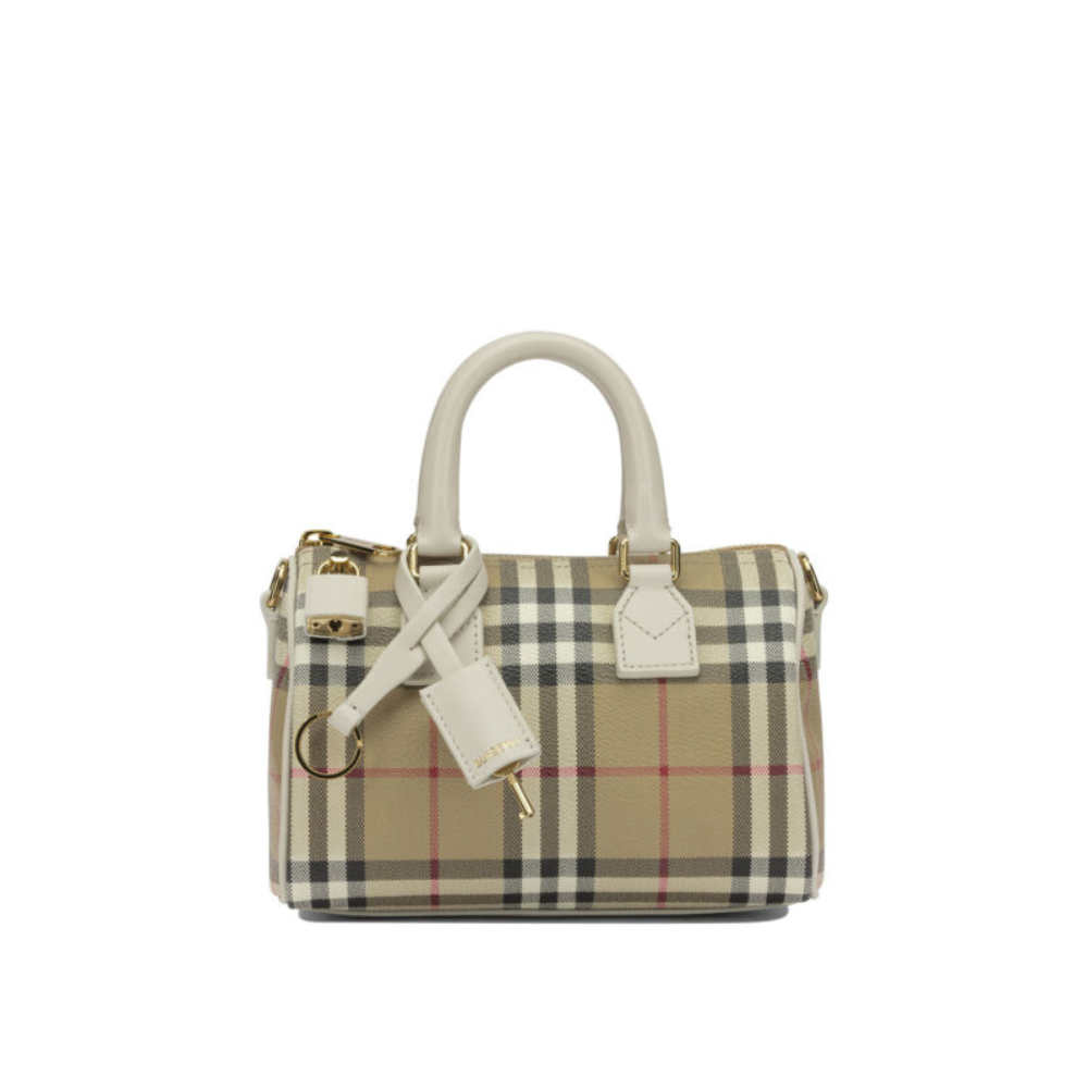 « Burberry » sac à main femme beige mini check en toile enduite et finitions cuir