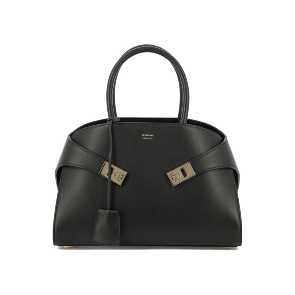 cette pièce de la maison ferragamo pour femme est un accessoire de maroquinerie au design iconique et architectural conçu pour la saison printemps-été 2026. fabriquée en italie, elle est intégralement confectionnée dans un cuir de veau au grain naturel de première qualité (100 %), offrant une structure compacte, une main soyeuse et une durabilité exceptionnelle propre aux standards de la haute manufacture italienne ferragamo. sa silhouette « hug » se distingue par son panneau arrière asymétrique qui enveloppe les soufflets latéraux et sa ligne arrondie, alliant l’esthétique sculpturale de la griffe à une fonctionnalité idéale pour vos accessoires de prestige quotidiens. le design au coloris noir présente une construction soignée avec des boucles gancini en finition dorée, signature du prestige et de l’identité visuelle de la maison ferragamo. la structure inclut des poignées larges et une bandoulière amovible, garantissant une silhouette équilibrée, une grande liberté de mouvement et un confort d’utilisation exemplaire. ce modèle allie parfaitement la noblesse d’une peausserie sélectionnée à une ingénierie de design de luxe, constituant une pièce de collection indispensable pour votre vestiaire.