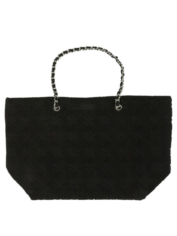 Le sac cabas femme Tory Burch Ella Terry Chain se distingue par son style moderne et sa praticité. Confectionné en coton mélangé avec polyamide et élasthanne, il associe souplesse et résistance. Sa chaîne raffinée apporte une touche élégante qui rehausse son allure, tandis que sa teinte noire intemporelle en fait un accessoire polyvalent, parfait pour le quotidien comme pour des occasions plus habillées. Fabriqué avec soin, ce modèle illustre parfaitement l’esthétique contemporaine de la maison Tory Burch.