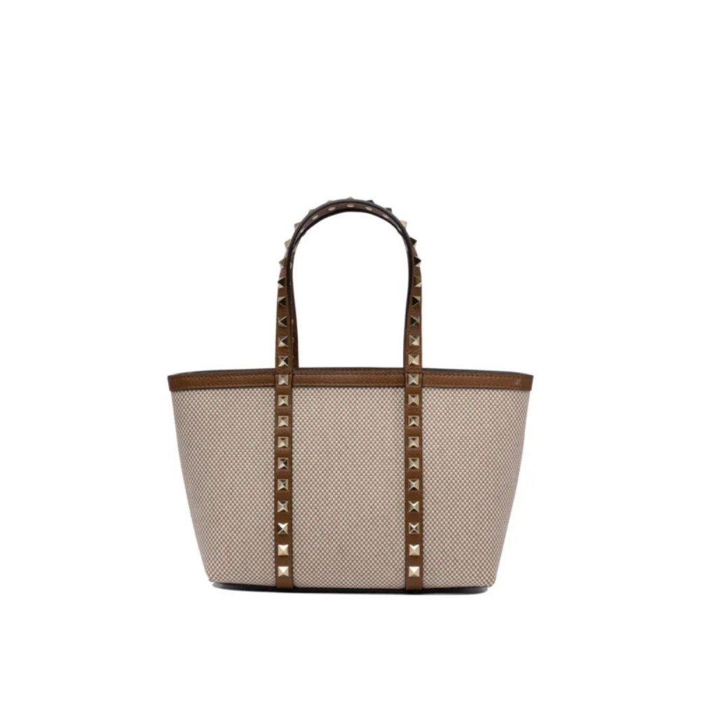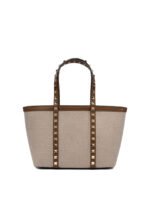 « Valentino Garavani » sac à main femme beige toile et cuir