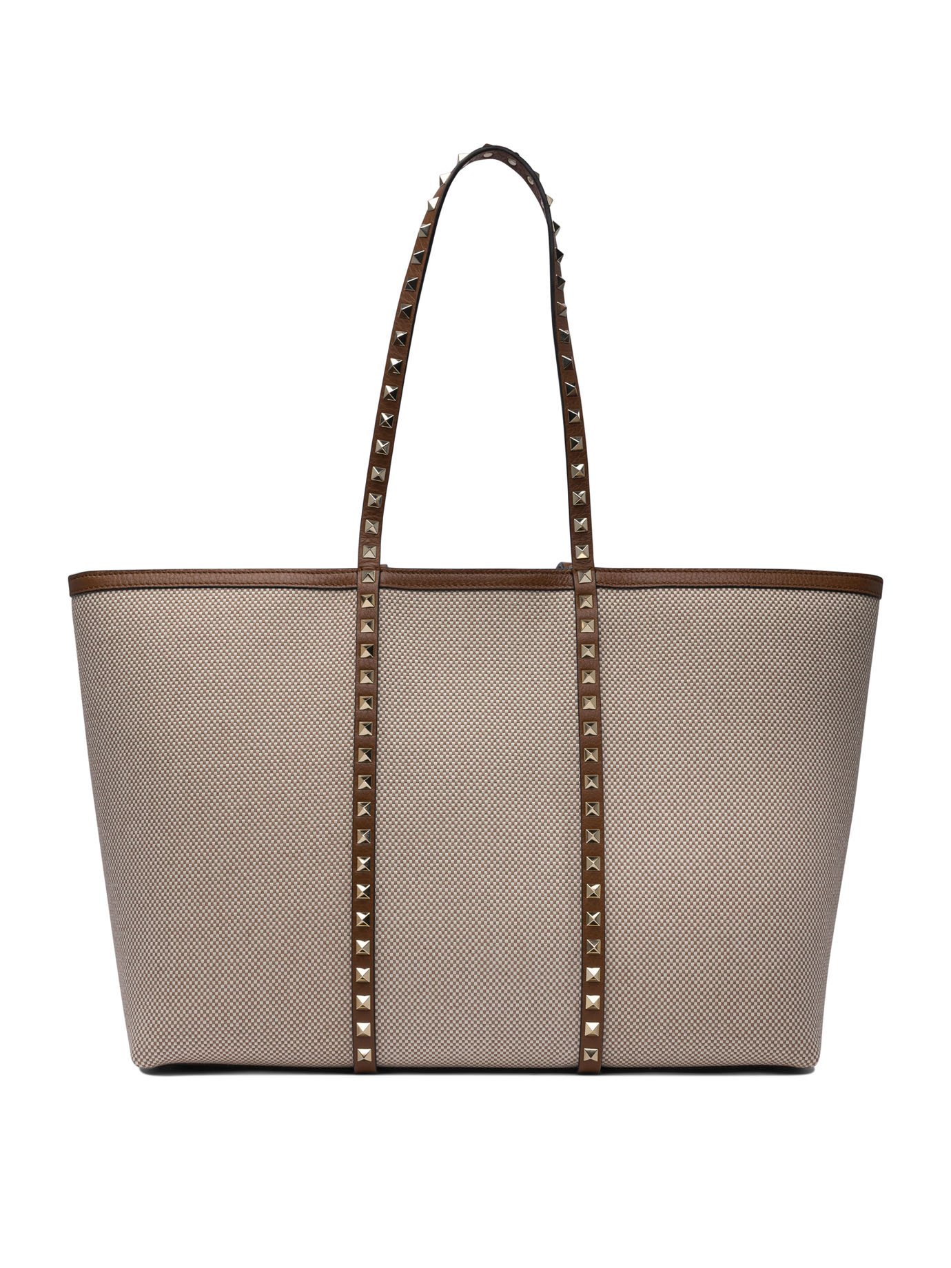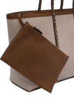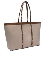 « Valentino Garavani » sac cabas femme beige en tissu et cuir