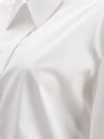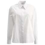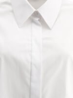 Cette chemise Alexander McQueen pour femme incarne une élégance contemporaine au raffinement maîtrisé. Confectionnée en popeline de coton blanc optique, elle offre une tenue nette et structurée idéale pour la saison Automne Hiver. Son col italien, sa fermeture boutonnée dissimulée et son ourlet arrondi soulignent une esthétique épurée et sophistiquée. Polyvalente, elle se porte aussi bien dans un cadre professionnel que pour des occasions plus habillées, apportant une allure chic et intemporelle.
