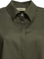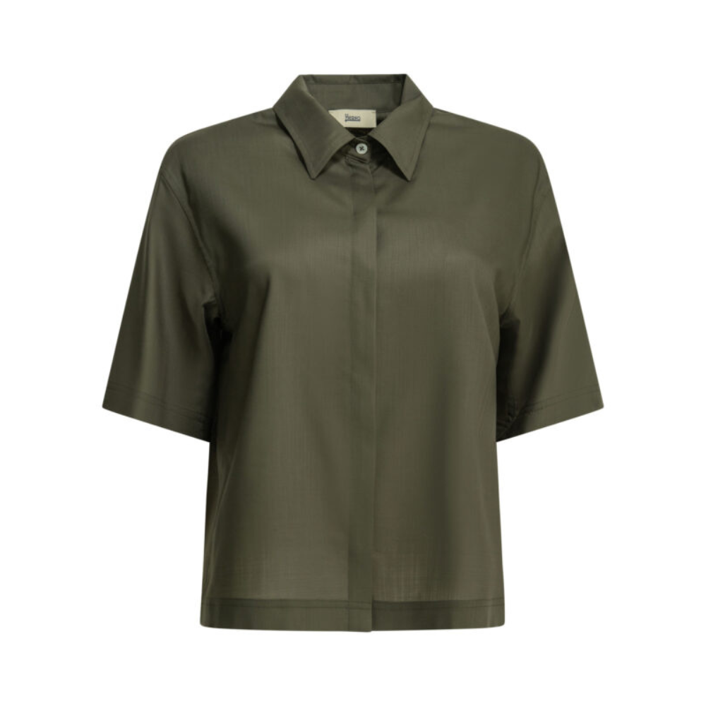 cette chemise de la maison herno pour femme est une pièce de prêt-à-porter au design minimaliste et raffiné conçue pour la saison printemps-été 2026. fabriquée en italie, elle est intégralement confectionnée dans une mousseline de laine vierge peignée de première qualité (100 %), offrant une structure légère, une respirabilité naturelle exceptionnelle et un tissage toile aéré propre aux standards de la haute manufacture italienne. sa silhouette se distingue par une coupe boxy moderne et une ligne épurée sans doublure, alliant l’esthétique contemporaine de la griffe à un confort thermique idéal pour vos tenues de saison. le design au coloris vert émeraude présente une construction soignée avec un col classique et une fermeture à boutons dissimulés sous patte, signature du prestige et de la discrétion de la marque. la structure inclut des manches courtes et l’emblématique logo métallique herno appliqué au dos, garantissant une finition haut de gamme et une tenue de forme impeccable malgré sa grande légèreté. ce modèle allie parfaitement la noblesse d’une fibre naturelle thermorégulatrice à une ingénierie de coupe architecturale, constituant un essentiel de prestige pour votre vestiaire.