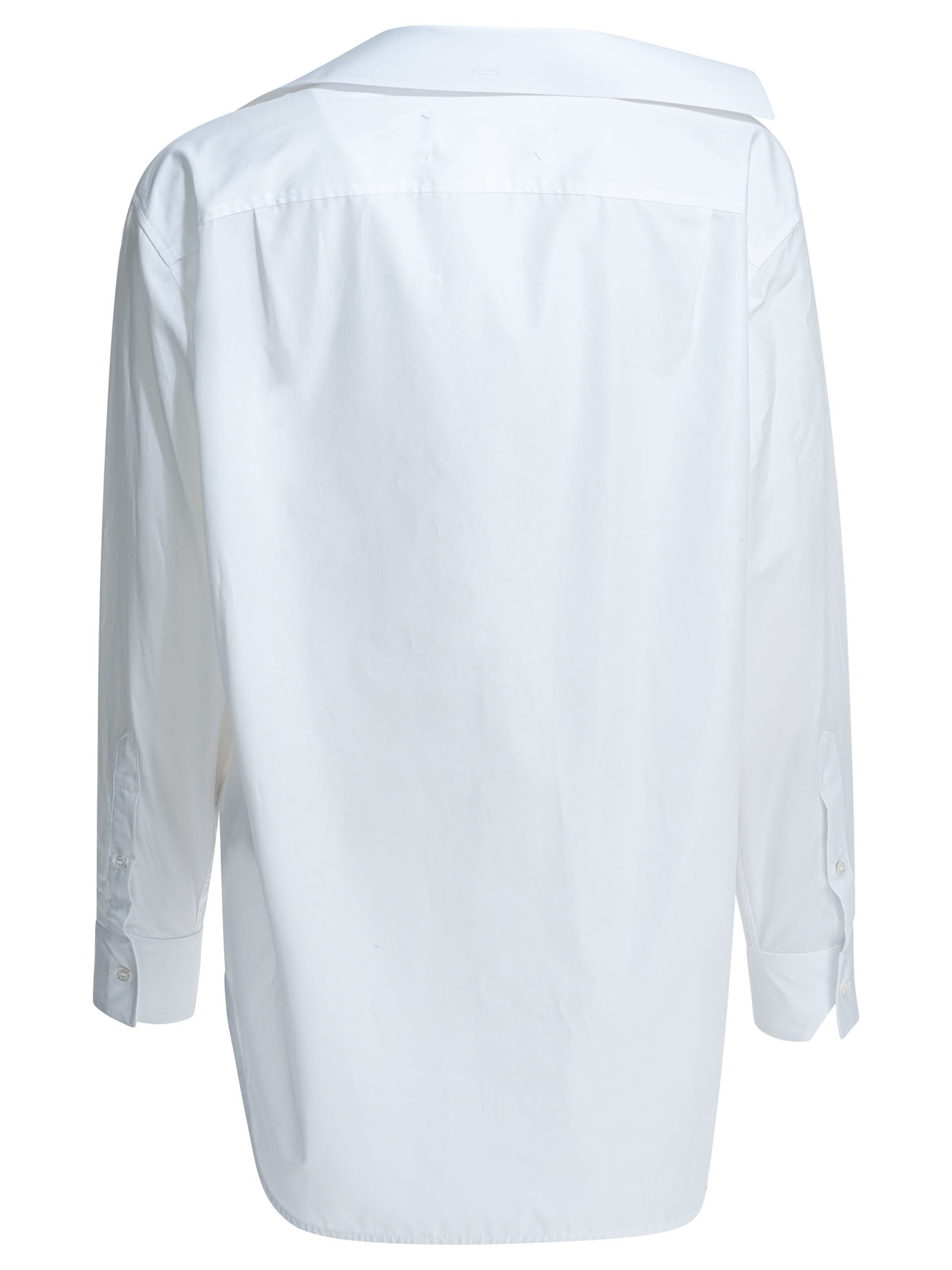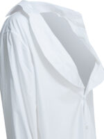 cette chemise de la maison maison margiela pour femme est une pièce de prêt-à-porter au design conceptuel et épuré conçue pour la saison printemps-été 2026. fabriquée en italie, elle est intégralement confectionnée dans un coton de première qualité au toucher lisse (100 %), offrant une structure légère, une respirabilité naturelle et une tenue impeccable propre aux standards de la haute couture parisienne. sa silhouette se distingue par une coupe surdimensionnée (oversized fit) légèrement allongée et un ourlet arrondi, alliant l’esthétique déconstructionniste de la griffe à une élégance fluide idéale pour vos tenues de prestige. le design au coloris blanc optique présente une construction soignée avec un large drapé distinctif sur le décolleté en v, signature du prestige et de l’innovation architecturale de la marque. la structure inclut des manches longues avec des poignets boutonnés structurés et les emblématiques quatre surpiqûres blanches au dos, garantissant une reconnaissance visuelle immédiate et une finition artisanale d’excellence. ce modèle allie parfaitement la noblesse d’une fibre naturelle à une ingénierie de coupe avant-gardiste, constituant une pièce de prestige pour votre vestiaire.
