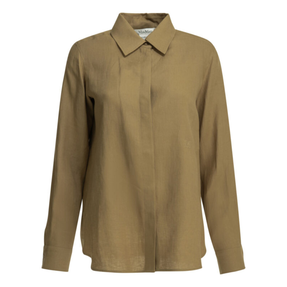 « Max mara » chemise femme marron en lin avec broderie monogramme