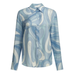 « Pucci » chemise femme bleu clair en pur twill de soie à imprimé graphique