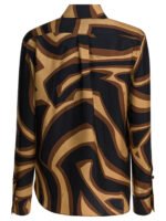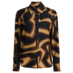 Cette chemise Emilio Pucci pour femme illustre le raffinement graphique de la maison italienne. Confectionnée en twill de soie, elle se distingue par l’emblématique imprimé Labirinto appliqué sur l’ensemble du vêtement, créant un effet visuel unique selon le placement du motif. Sa coupe droite et sa silhouette élégante sont complétées par un col classique et des manches longues. La fermeture frontale dissimulée apporte une finition épurée, tandis que la soie lumineuse souligne la richesse de la texture et du motif.