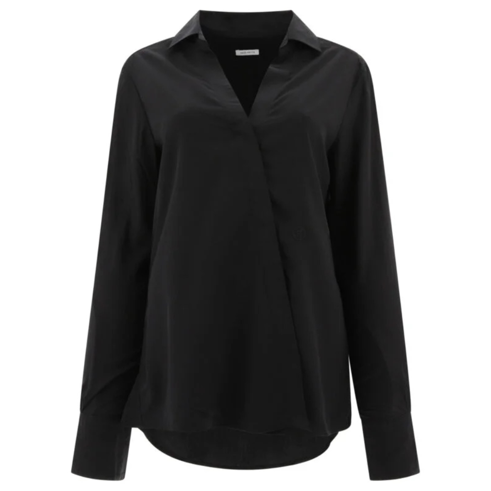 La blouse Irene de Saks Potts pour femme séduit par son élégance minimaliste et son design contemporain. Confectionnée dans un mélange raffiné de tencel et de soie, elle offre une texture fluide et douce au toucher. Son décolleté en V apporte une touche féminine subtile, tandis que la fermeture asymétrique dissimulée renforce l’esthétique épurée du modèle. Le col classique et les manches longues complètent sa silhouette équilibrée. Le monogramme brodé ajoute une signature discrète et élégante.