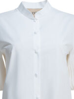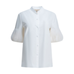 cette chemise décontractée de la maison valentino pour femme est une pièce de prêt-à-porter au design éthéré et précieux conçue pour la saison printemps-été 2026. fabriquée en italie, elle est intégralement confectionnée dans une popeline de coton de première qualité (100 %), offrant une structure nette, une main fraîche et une excellente respirabilité propre aux standards de la haute manufacture de luxe italienne. sa silhouette se distingue par ses broderies complexes en organza appliquées sur le devant, alliant l’esthétique romantique de la griffe à une sophistication urbaine idéale pour vos tenues de prestige. le design au coloris blanc présente une construction soignée avec un col officier (mandarin collar) et une coupe droite de 63,4 cm, signature du prestige et de l’ingénierie ornementale de pierpaolo piccioli. la structure inclut une fermeture par boutons apparents et des manches courtes, garantissant une silhouette équilibrée, une grande liberté de mouvement et un confort de porter exemplaire. ce modèle allie parfaitement la noblesse d’une fibre naturelle sélectionnée à une ingénierie de broderie haute couture, constituant une pièce de collection indispensable pour votre vestiaire.