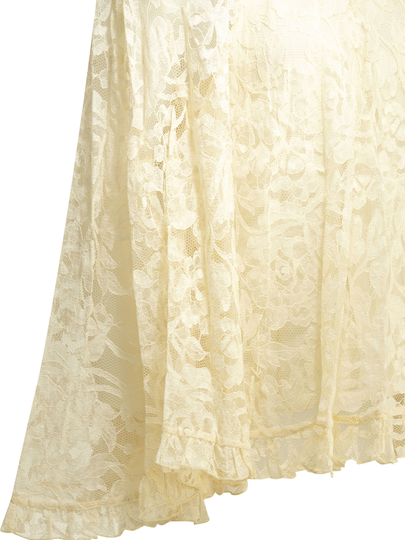 motif : dentelle travaillée en all-over créant des jeux de transparence et de texture sur l’ensemble du corps