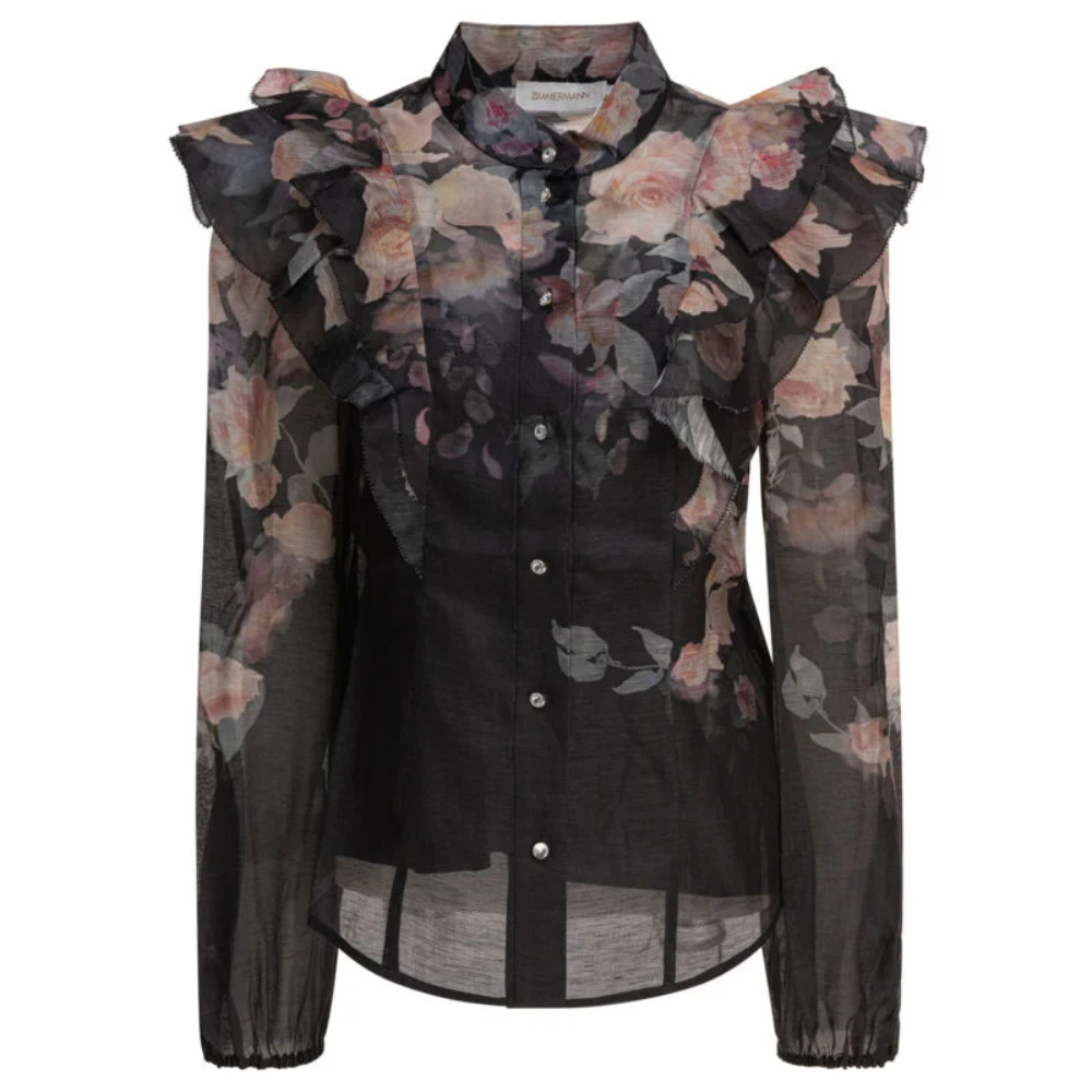 Cette chemise signée Zimmermann associe élégance raffinée et légèreté estivale. Confectionnée dans un mélange de lin et de soie, elle séduit par sa fluidité, sa respirabilité et son toucher délicat. Sa teinte noire, intemporelle et sophistiquée, en fait une pièce polyvalente, adaptée aussi bien à un look habillé qu’à une allure plus décontractée. Fabriquée en Chine, elle illustre le style moderne et le raffinement de la maison Zimmermann.