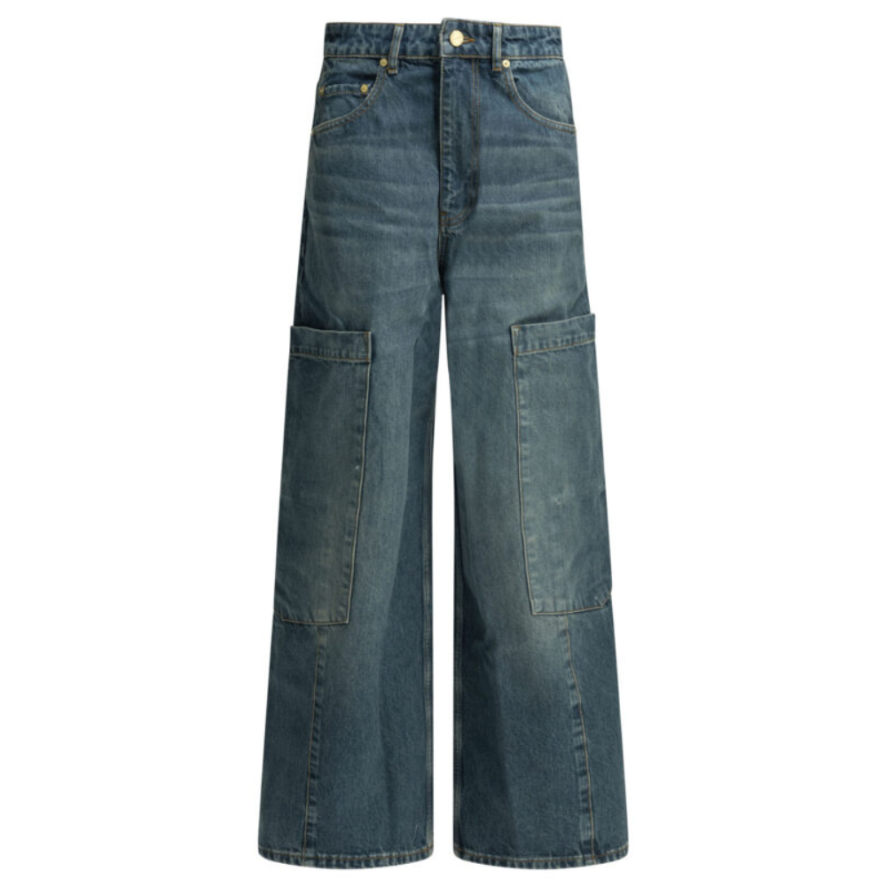 « Ganni » jean cargo femme bleu baggy en coton