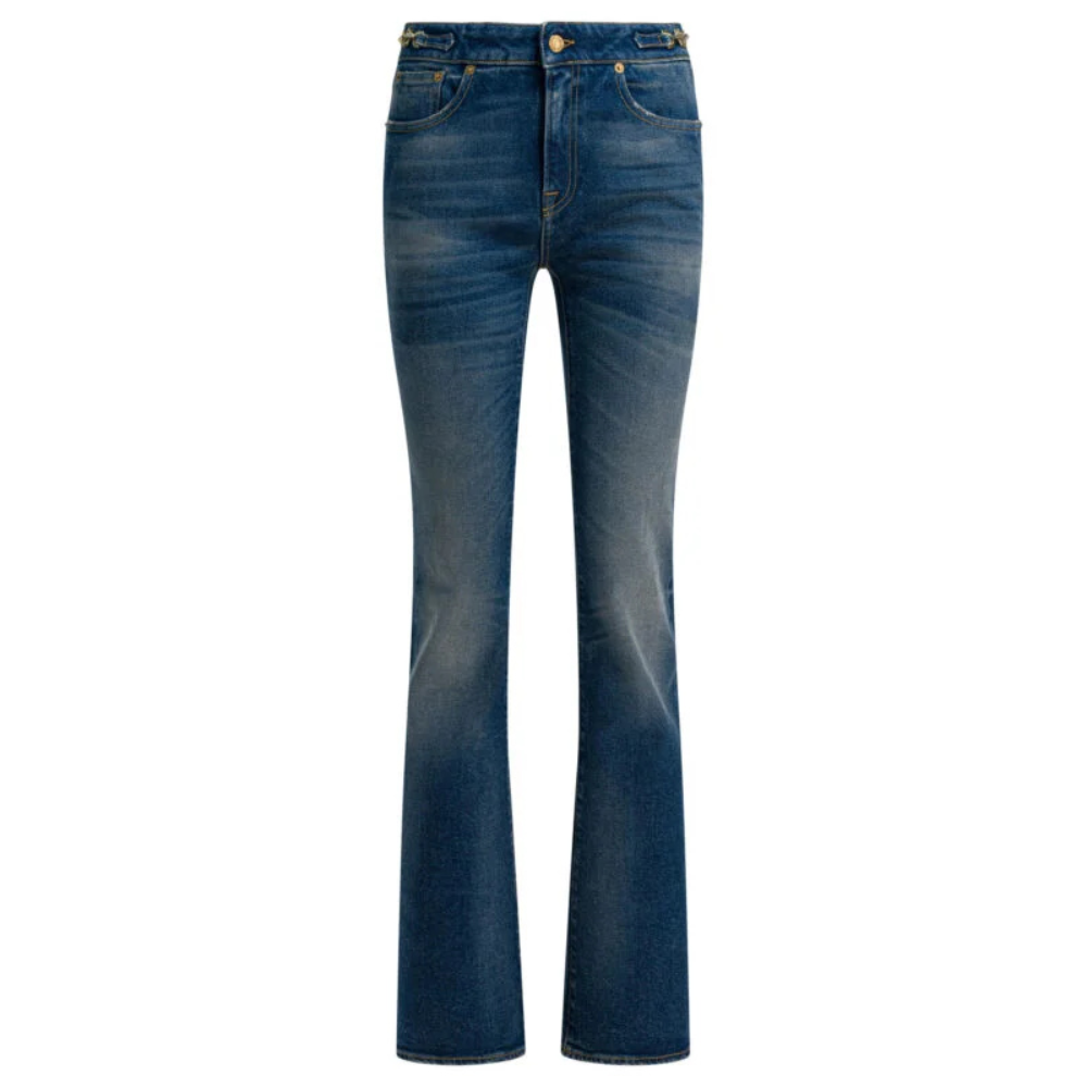 Ce jean Golden Goose pour femme revisite le denim vintage avec une silhouette bootcut légèrement évasée qui allonge la jambe. Confectionné en denim de coton avec une touche d’élasthanne, il offre confort et liberté de mouvement au quotidien. Le lavage Archive Wash apporte un effet vécu authentique et une texture caractéristique. Sa construction cinq poches et son détail métallique apparent à la taille soulignent l’esthétique casual premium du modèle.