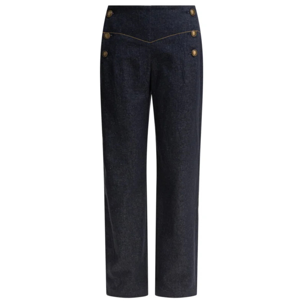 « Ines de la Fressange » pantalon femme bleu en coton et lin coupe regular