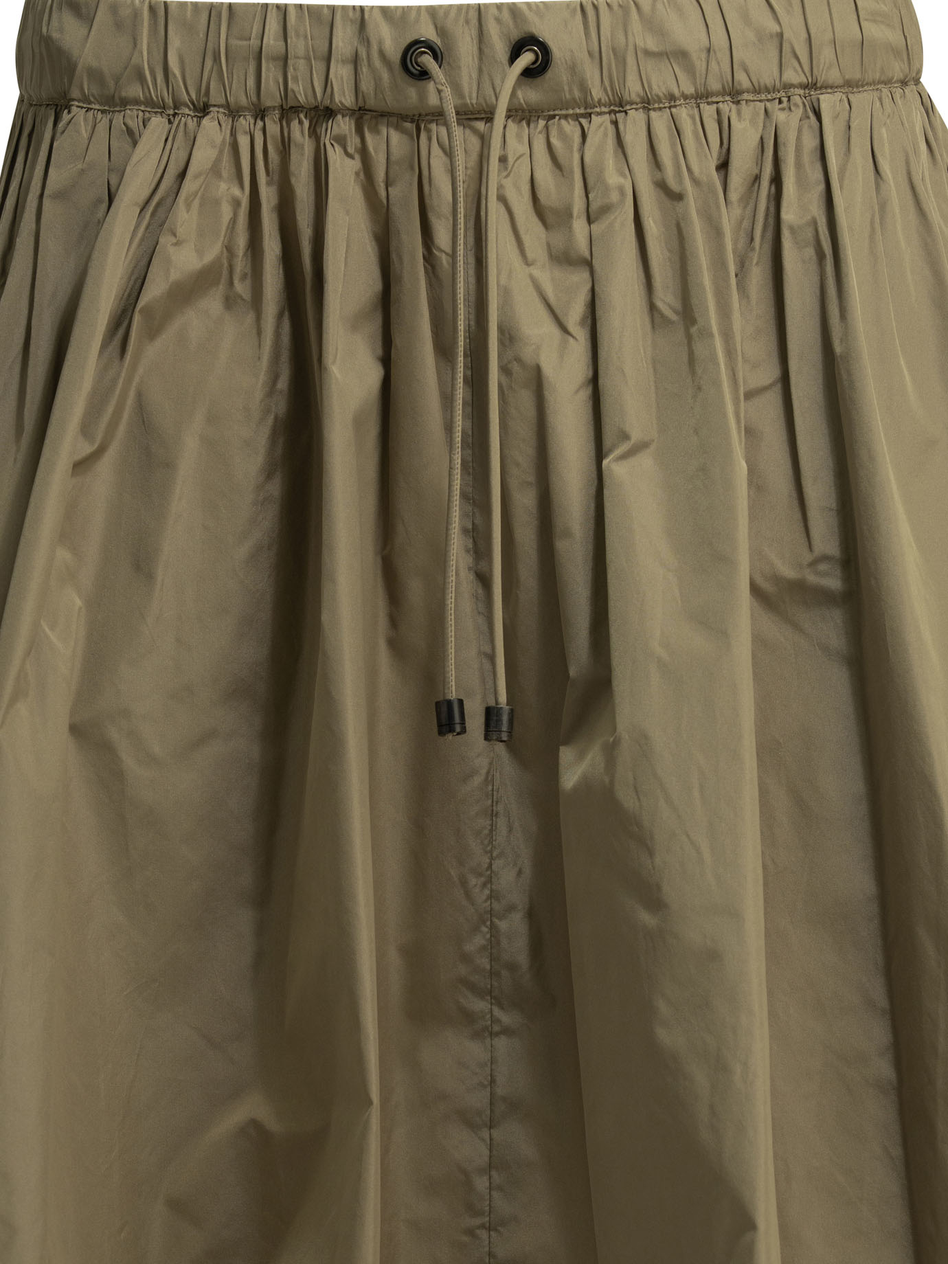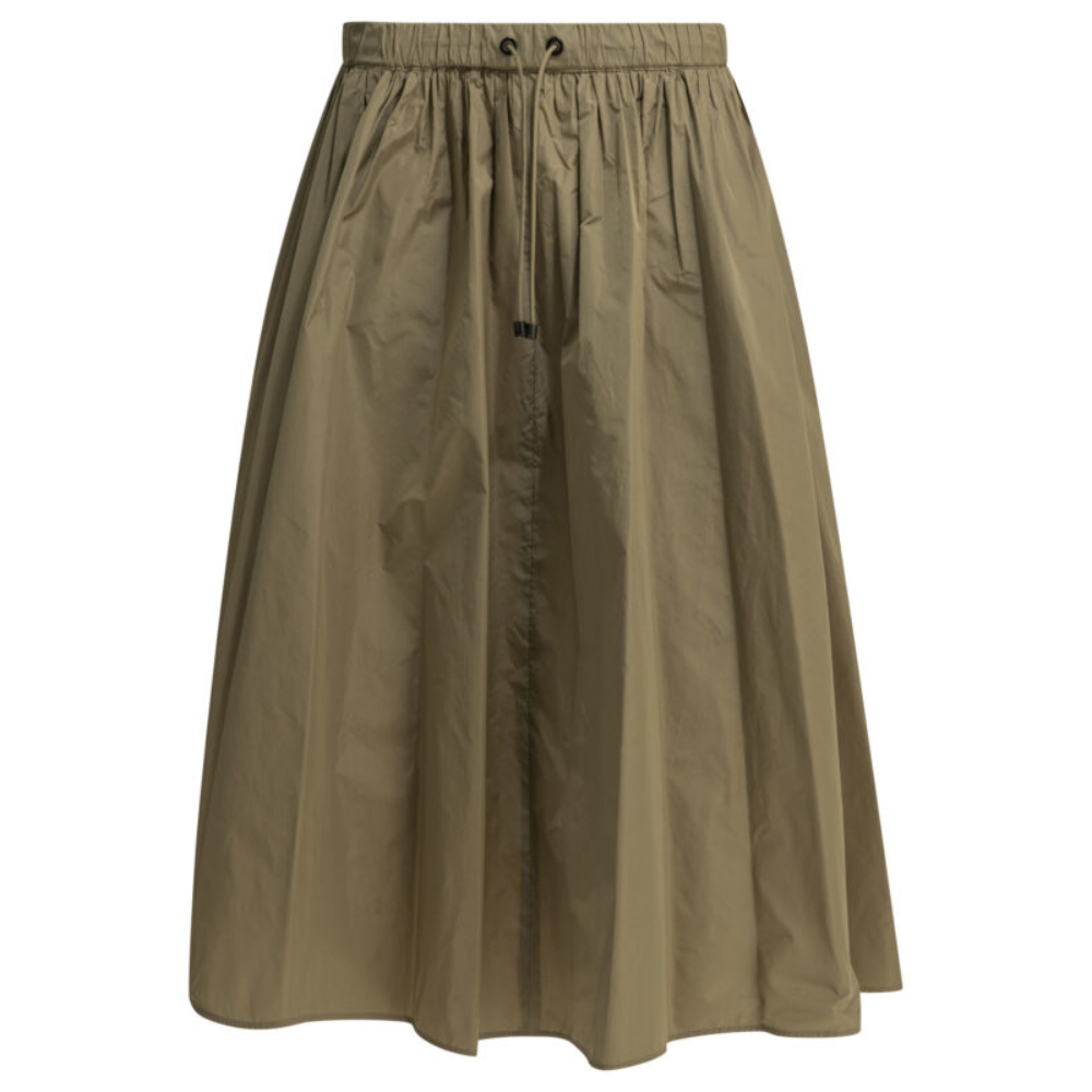 cette jupe de la maison max mara pour femme est une pièce de prêt-à-porter à la silhouette aérienne conçue pour la saison printemps-été 2026. fabriquée en italie, elle est confectionnée dans un taffetas de soie mélangée de haute qualité, offrant un éclat subtil et une tenue structurelle élégante. sa silhouette se distingue par une coupe évasée en forme de trapèze (a-line) de longueur midi, garantissant une allure féminine et un mouvement fluide. le design présente une taille élastiquée (mid-riff waist) pour un confort optimal, complétée par un cordon de serrage tubulaire ajustable avec des œillets métalliques et des embouts en corne véritable. la construction non doublée privilégie la légèreté estivale, tout en intégrant des poches pratiques discrètement insérées dans les coutures des hanches. ce modèle au coloris beige sable (055) incarne parfaitement le raffinement décontracté et le luxe fonctionnel propres à la griffe italienne.