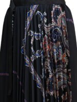 Cette jupe plissée Sacai pour femme se distingue par son imprimé cachemire intégral et son travail technique du plissé, signature de la maison japonaise. Confectionnée en polyester, elle présente une structure régulière qui met en valeur le tombé du tissu et la fluidité du mouvement. La ceinture structurée à la taille assure un maintien précis et souligne la silhouette, tandis que la doublure en cupro apporte confort et légèreté. Une pièce forte et graphique, idéale pour la saison automne-hiver.