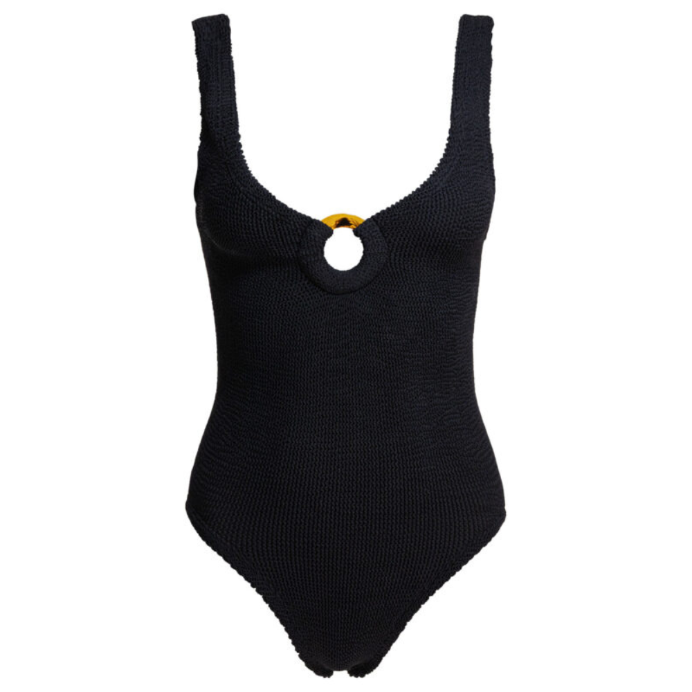 « Hunza g » maillot de bain femme noir une pièce en maille créponnée à une épaule