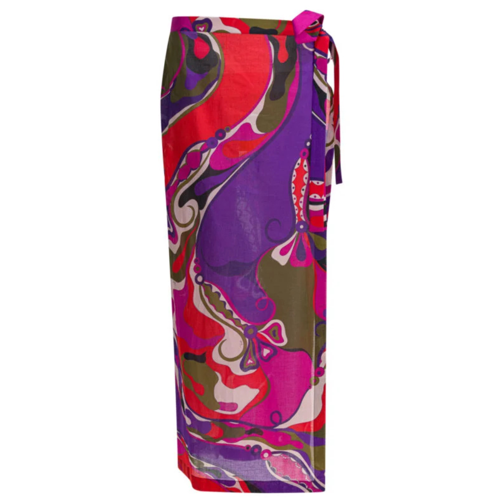 Le paréo Orchidee Pucci pour femme incarne l’élégance estivale signature de la maison italienne. Confectionné en coton léger, il offre une silhouette fluide et agréable à porter, idéale pour la saison automne hiver 2025 en destination soleil. Sa construction portefeuille ajustable permet un tombé modulable, tandis que la fente profonde sur la longueur de la jambe apporte mouvement et féminité. L’imprimé botanique intégral confère à cette pièce une dimension graphique raffinée et distinctive.