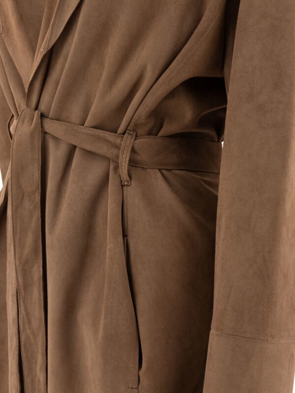 Ce manteau signé Salvatore Santoro illustre le raffinement italien à travers une confection en cuir d’agneau de haute qualité. Souple et résistant, il offre un confort exceptionnel et une allure élégante. Sa teinte marron, à la fois sobre et lumineuse, en fait une pièce polyvalente et intemporelle, idéale pour la mi-saison comme pour les soirées fraîches d’été.