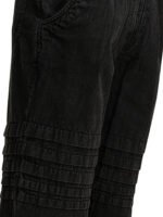 Le pantalon « Mellya » Marant Étoile pour femme est confectionné en chambray de coton léger à l’aspect délavé, idéal pour la saison printemps/été 2026. Sa structure carotte à taille haute est soulignée par des surpiqûres et des pattes de serrage latérales ajustables qui structurent la silhouette. La fermeture frontale associe bouton-pression métallique et zip dissimulé pour une finition soignée. Les poches latérales type carter, les poches plaquées au dos et les plis piqués aux genoux complètent cette pièce à jambe droite et ligne décontractée.
