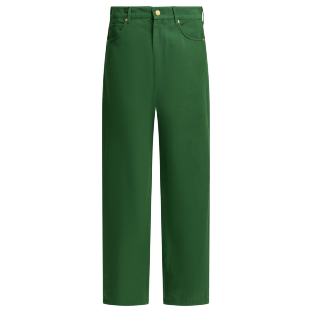 ce pantalon de la maison max mara pour femme est une pièce de prêt-à-porter au design décontracté et raffiné conçue pour la saison printemps-été 2026. fabriqué en italie, il est confectionné dans un coutil (drill) de première qualité mêlant le coton (59 %) et le lin (41 %) avec un traitement teinté en pièce, offrant une structure robuste, une excellente respirabilité et un toucher naturel idéal pour les climats estivaux. sa silhouette se distingue par une coupe régulière (regular fit) aux lignes droites et une taille haute (high waist), alliant l’esthétique intemporelle du vestiaire italien à un confort quotidien supérieur. le design au coloris vert végétal présente une construction soignée à cinq poches, incluant des poches plaquées à l’arrière et une fermeture frontale par glissière sous patte avec un bouton métallique. la structure inclut des passants à la taille, des rivets métalliques de renfort et une étiquette personnalisée à l’arrière, soulignant l’attention portée aux détails par la griffe. ce modèle allie parfaitement la noblesse des fibres naturelles à une ingénierie de coupe élégante, constituant un essentiel de prestige pour votre vestiaire de saison.