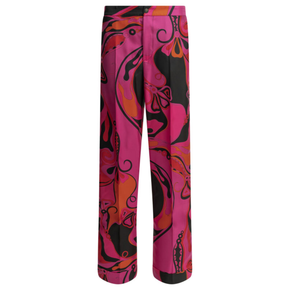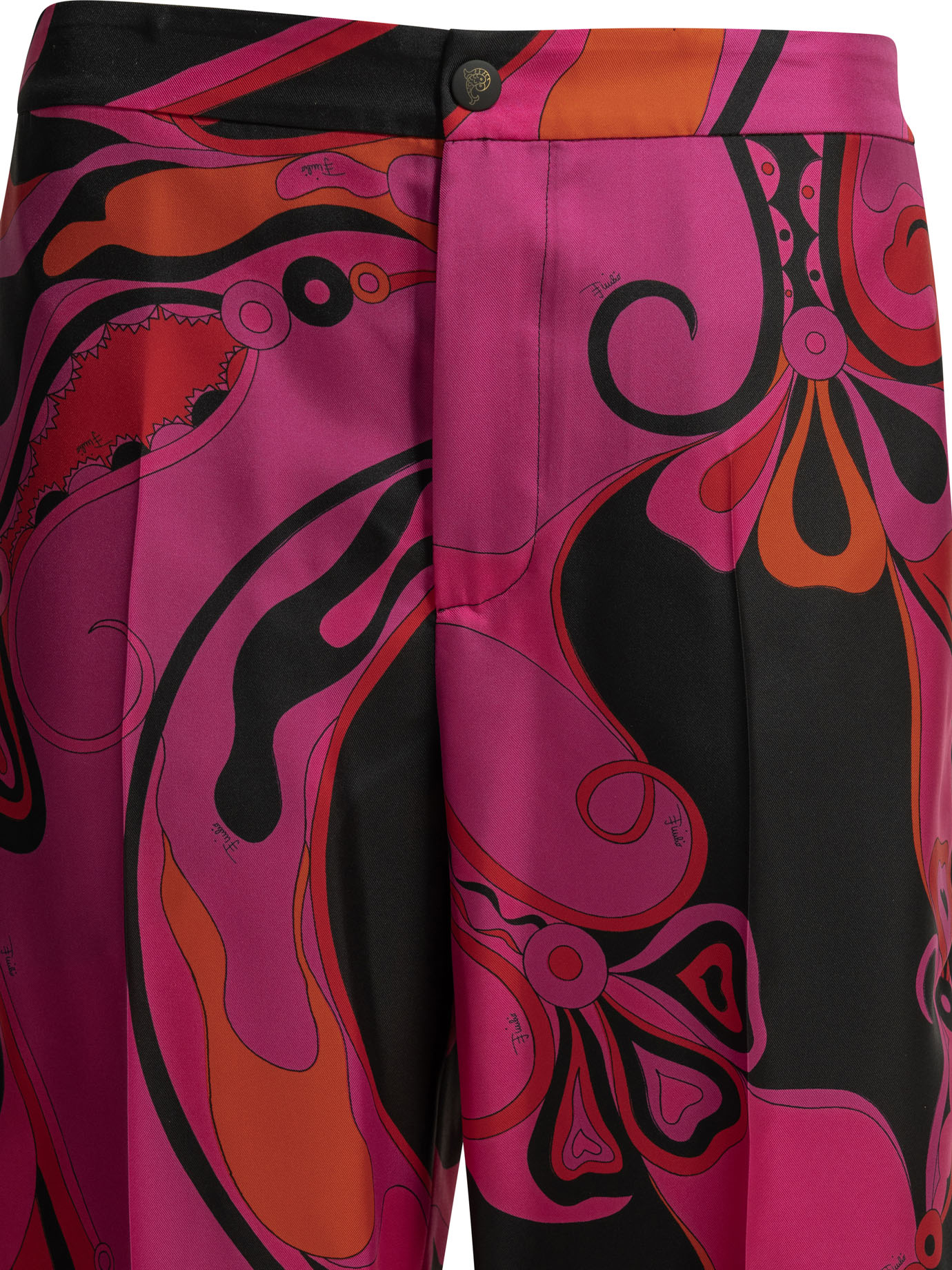 « Pucci » pantalon femme fuchsia en soie à imprimé graphique et coupe palazzo
