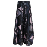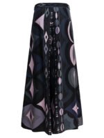 Ce pantalon Pucci « Collane » incarne l’élégance expressive de la maison italienne à travers un imprimé d’archive distinctif appliqué sur une soie fluide et lumineuse. Sa silhouette large palazzo accompagnée de plis structurés crée un mouvement gracieux à chaque pas, tandis que la taille haute ajustée met en valeur la silhouette avec sophistication. Le placement variable du motif rend chaque pièce unique et souligne le caractère artistique du modèle. Fabriqué en Italie, ce pantalon femme Pucci constitue une pièce forte idéale pour un vestiaire chic et contemporain.