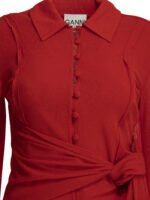 « Ganni » polo femme rouge en maille de polyester à détail drapé et noué