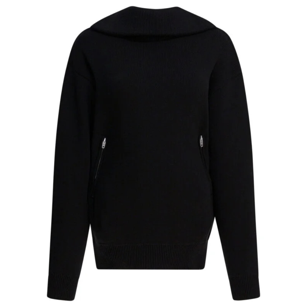 Ce pull femme Balenciaga Back-to-Front se distingue par une construction structurée en coton épais enrichi de polyamide et d’élasthanne pour plus de tenue et de confort. Son col montant retourné et son demi-zip positionné au dos apportent une signature audacieuse et contemporaine. Les épaules tombantes et les finitions côtelées aux poignets et à la base renforcent sa silhouette large et architecturée. Doté de poches latérales intégrées, il incarne l’esthétique avant-gardiste de la saison automne hiver 2025.