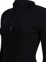 La fermeture demi-zip sur le devant s’intègre harmonieusement à la construction du pull, renforçant son aspect fonctionnel et minimaliste. Une pièce élégante et polyvalente, idéale à porter seule ou sous une veste pour un look chic et contemporain.