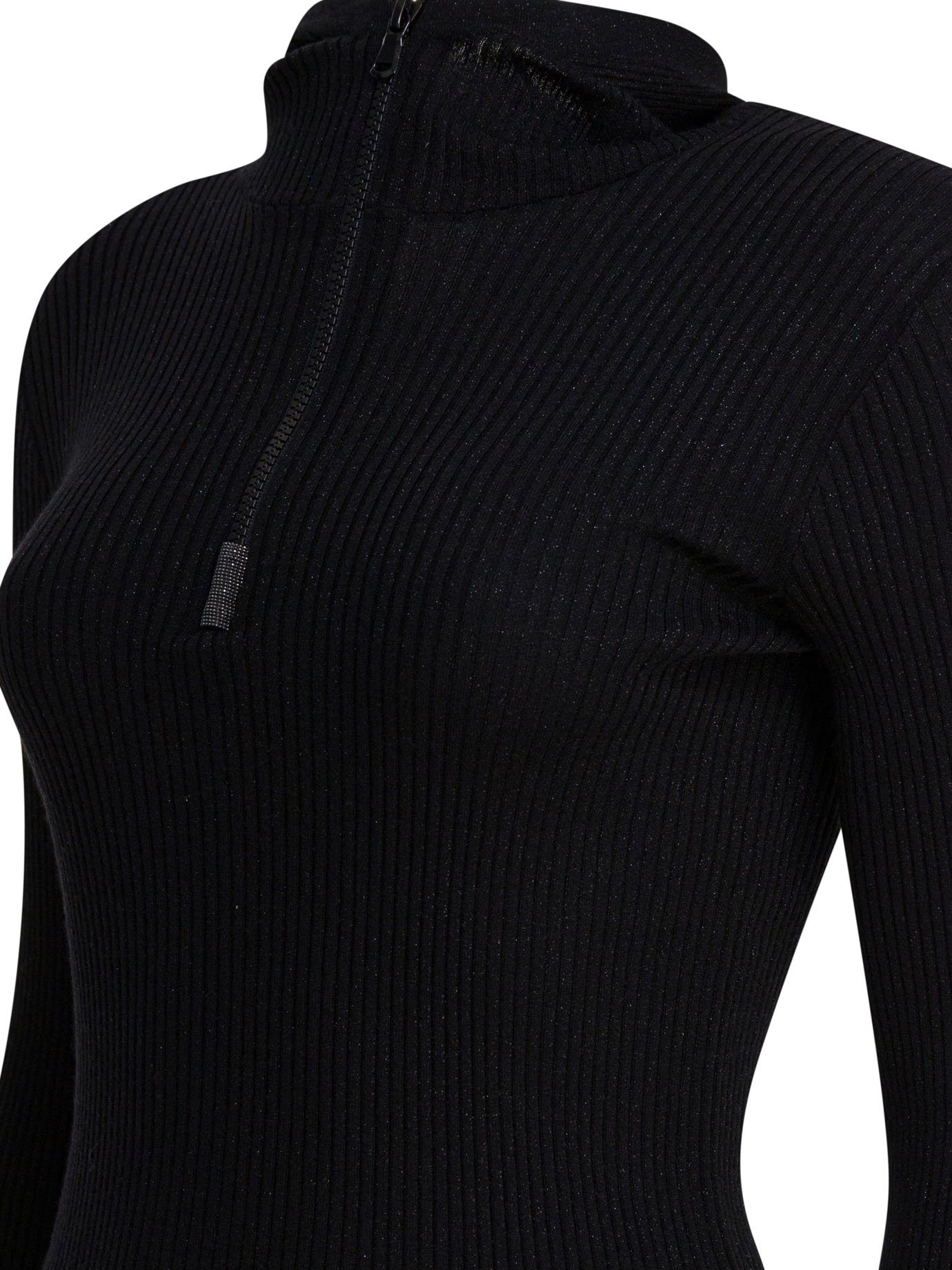 « Brunello Cucinelli » pull demi-zip en maille côtelée noir femme