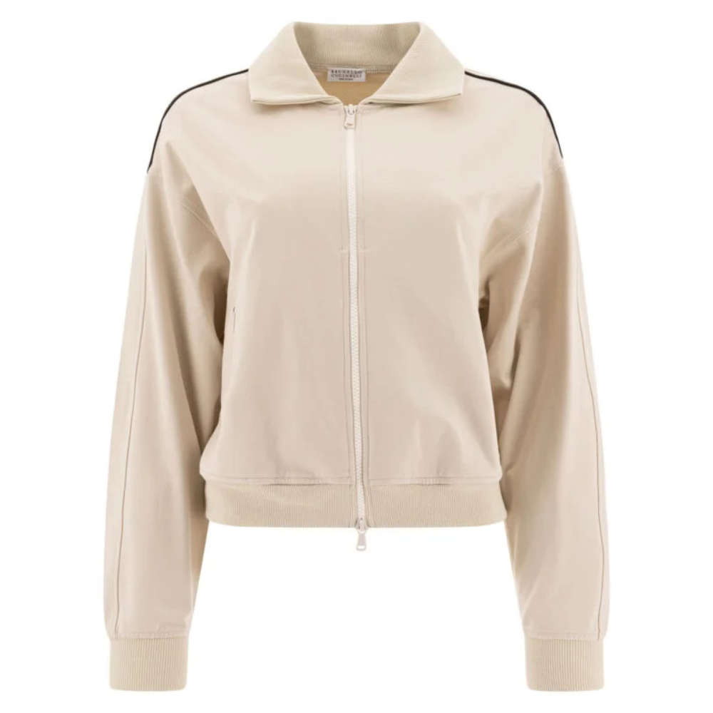 « Brunello Cucinelli » pull zippé femme beige coton coupe standard