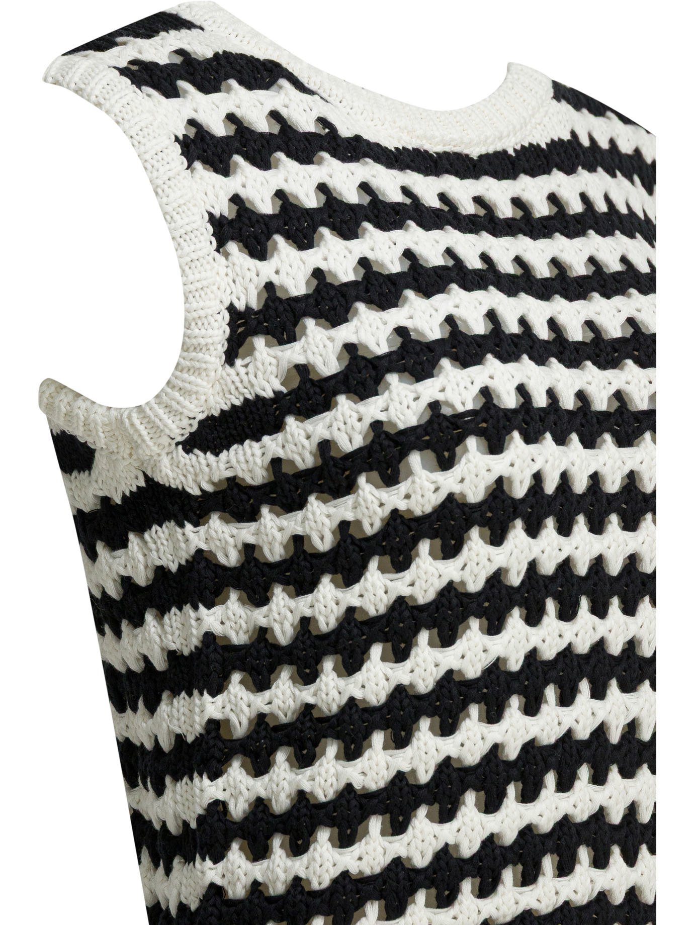 « Ines de la Fressange » maille sans manches noire à rayures coton femme