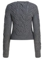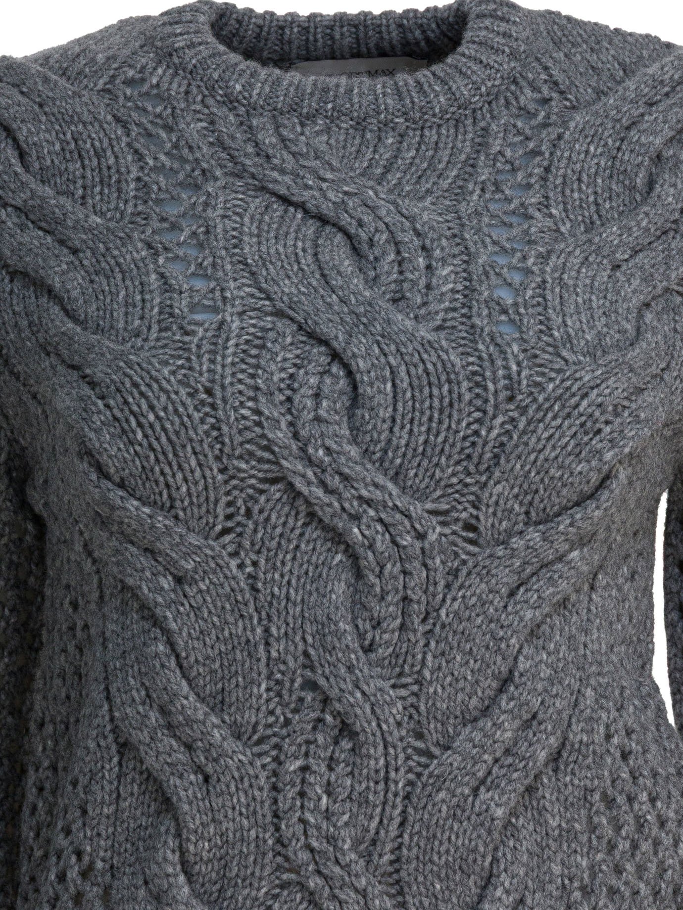 Ce pull Sportmax pour femme allie sophistication contemporaine et confort hivernal. Confectionné dans un mélange de laine chaud et doux, il se distingue par son travail torsadé ajouré sur le buste et les manches, apportant relief et élégance à la silhouette. Son encolure ronde classique et ses finitions côtelées aux poignets et à la base assurent une tenue structurée. Sa coupe regular offre un équilibre parfait entre aisance et allure raffinée pour la saison automne hiver 2025.