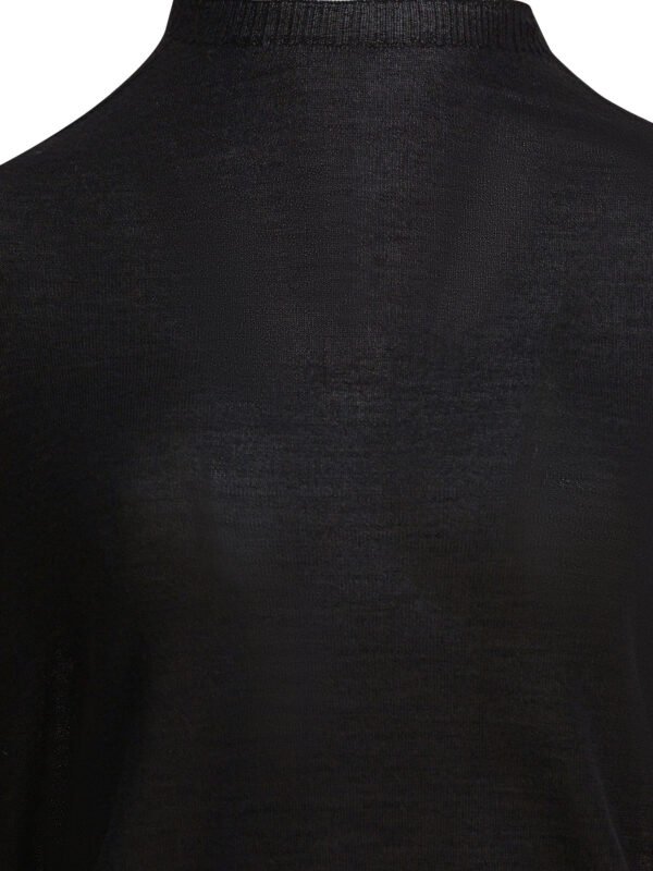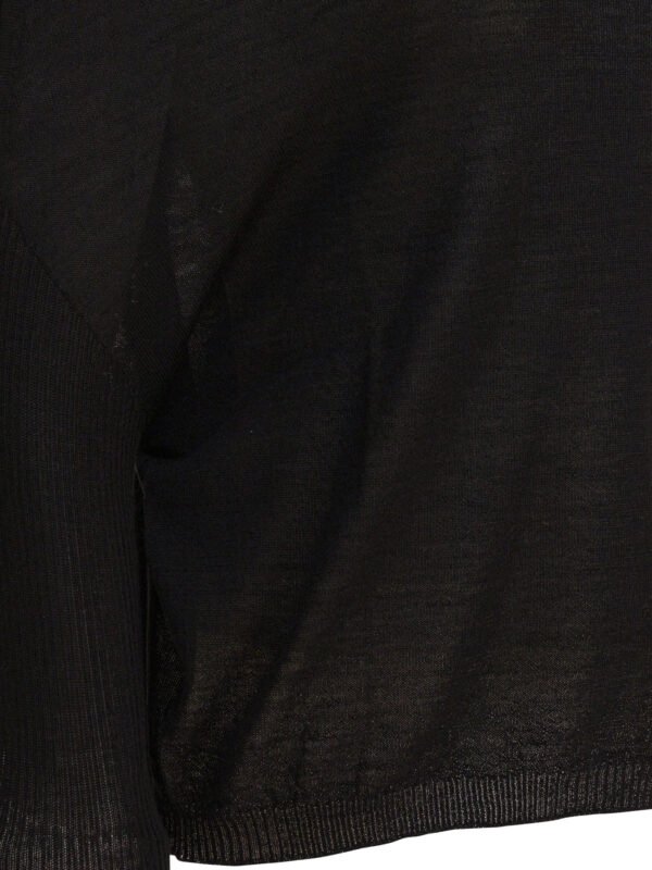 Ce pull Rick Owens pour femme en laine noire illustre parfaitement l’esthétique avant-gardiste de la maison. Confectionné en maille légère et douce, il se distingue par son encolure ronde côtelée au tombé légèrement drapé, ses épaules larges et sa silhouette oversize. Ses manches longues ajustées aux emmanchures et ses finitions côtelées aux poignets et à la base ajoutent structure et modernité. Une pièce emblématique qui conjugue confort et style contemporain.
