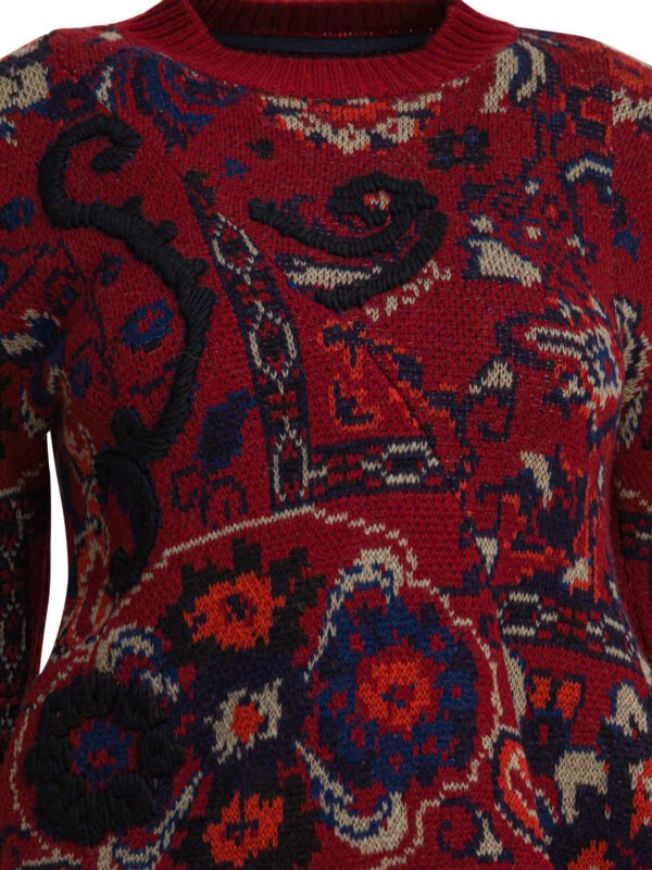 « Sacai » pull femme bordeaux laine à motif floral coupe regular