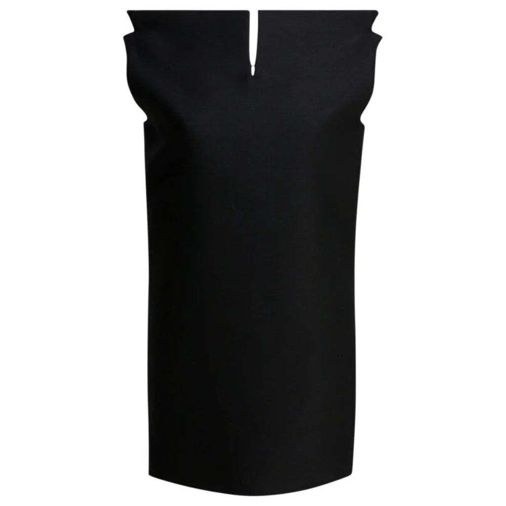 Cette robe courte Balenciaga pour femme se distingue par une silhouette architecturale et un design contemporain. Confectionnée en laine scuba à la structure compacte, elle offre une tenue précise et une allure sculpturale. Le col montant avec une petite ouverture en V à l’avant contraste avec un profond décolleté en V au dos, révélant une construction audacieuse. Les panneaux volumineux structurés à l’arrière et l’ourlet carré renforcent l’esthétique moderne du modèle, tandis que les poches obliques intégrées dans les coutures apportent fonctionnalité et discrétion.