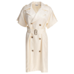 cette robe de la maison burberry pour femme est une pièce de prêt-à-porter au design architectural et iconique conçue pour la saison printemps-été 2025. fabriquée en pologne, elle est intégralement confectionnée dans un twill de pure viscose de première qualité (100 %), offrant une structure fluide au fini soyeux, un drapé élégant et une douceur de portage propre aux standards de la haute manufacture britannique. sa silhouette se distingue par une coupe droite régulière (regular fit) inspirée des codes du trench-coat classique, alliant l’esthétique historique de la griffe à une modernité urbaine idéale pour vos tenues de prestige. le design au coloris beige archive présente une construction soignée avec une fermeture croisée à double boutonnage et une ceinture assortie dotée de la boucle distinctive en forme de b, signature du prestige et de l’héritage renouvelé de burberry. la structure inclut des manches courtes, des pattes d’épaule structurées et des poches plaquées latérales, garantissant une silhouette géométrique parfaitement définie et une fonctionnalité sophistiquée. ce modèle allie parfaitement la noblesse d’une fibre artificielle haut de gamme à une ingénierie de coupe tailleur, constituant un essentiel de luxe pour votre vestiaire.