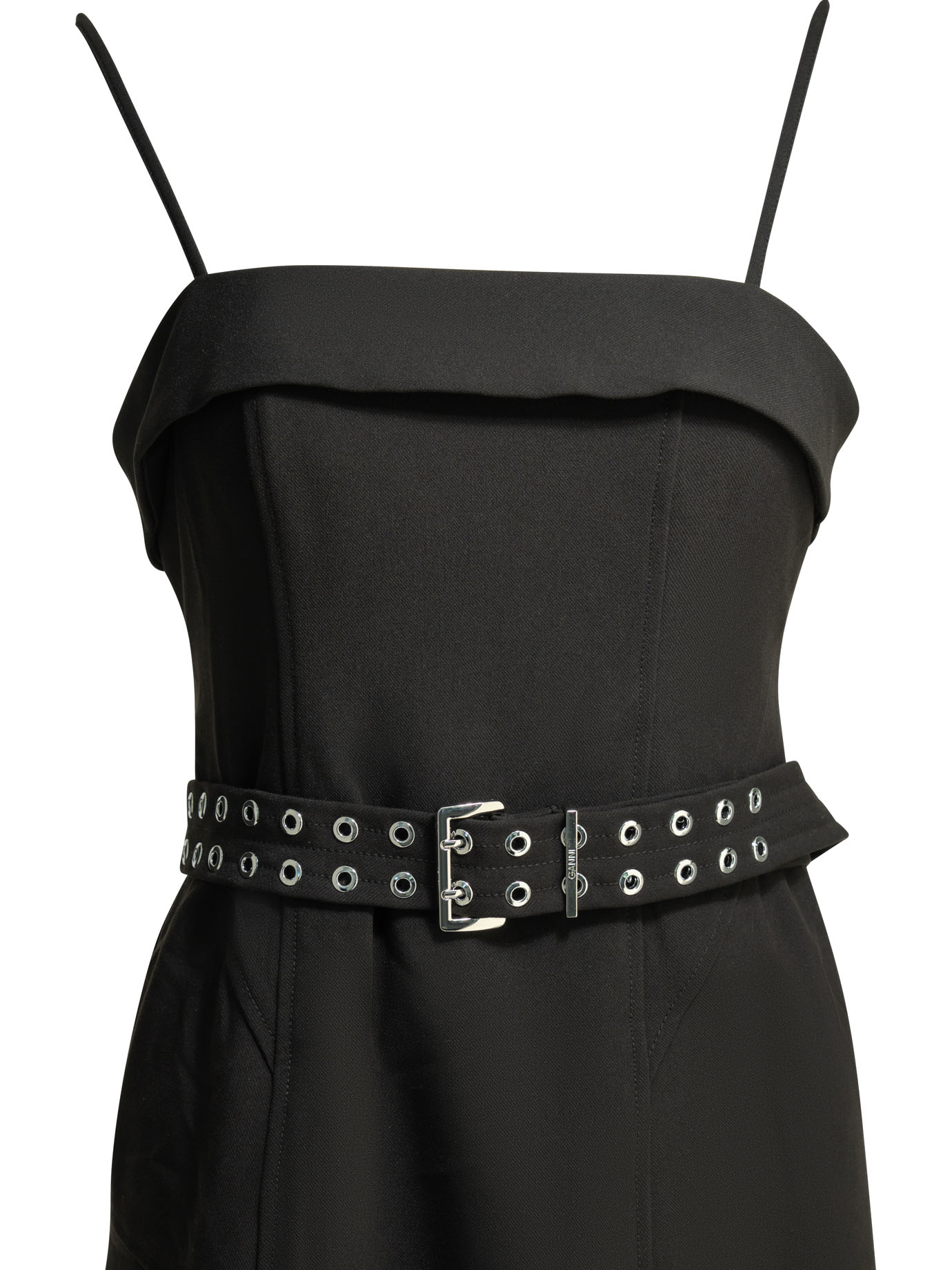 cette robe de la maison ganni pour femme est une pièce de prêt-à-porter au design architectural et moderne conçue pour la saison printemps-été 2026. fabriquée en chine, elle est confectionnée dans un mélange de fibres éco-responsables de première qualité (74 % polyester recyclé dont tex2tex™, 21 % viscose lenzing™ ecovero™ et 5 % élasthanne), offrant une structure fluide, une main douce et une extensibilité adaptée propre aux standards de la manufacture ganni. sa silhouette se distingue par sa coupe asymétrique audacieuse et ses découpes géométriques, alliant l’esthétique scandinave avant-gardiste de la griffe à une sophistication urbaine idéale pour vos tenues de prestige. le design au coloris noir uni présente une construction soignée avec une ceinture cousue à la taille et une encolure droite, signature du prestige et de l’identité visuelle de ganni. la structure inclut des bretelles fines et une doublure en acétate et viscose, garantissant une silhouette équilibrée, une grande liberté de mouvement et un confort de porter exemplaire. ce modèle allie parfaitement la noblesse de textiles innovants sélectionnés à une ingénierie de coupe asymétrique, constituant une pièce de collection indispensable pour votre vestiaire.