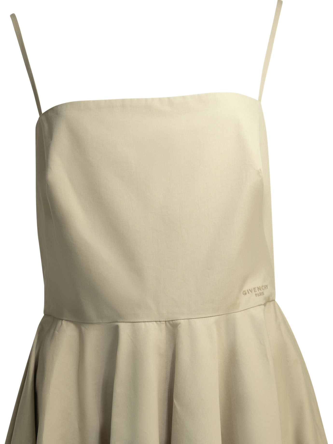 cette robe de la maison givenchy pour femme est une pièce de prêt-à-porter au design sculptural et géométrique conçue pour la saison printemps-été 2026. fabriquée en italie, elle est intégralement confectionnée dans une popeline de coton lourde de première qualité (100 %), offrant une structure rigoureuse, une main dense et une tenue exceptionnelle propre aux standards de la haute manufacture givenchy. sa silhouette trapèze (a-line) se distingue par son volume majestueux et sa jupe plissée fluide, alliant l’esthétique architecturale de la griffe à une sophistication estivale idéale pour vos tenues de prestige. le design au coloris beige présente une construction soignée avec une petite signature brodée ton sur ton au-dessus de la taille, signature du prestige et de l’identité visuelle de givenchy. la structure inclut une encolure carrée avec fente centrale et une fermeture zippée invisible à l’arrière, garantissant une silhouette équilibrée, une grande liberté de mouvement et un confort de porter exemplaire. ce modèle allie parfaitement la noblesse d’une fibre naturelle sélectionnée à une ingénierie de coupe tridimensionnelle, constituant une pièce de collection indispensable pour votre vestiaire.