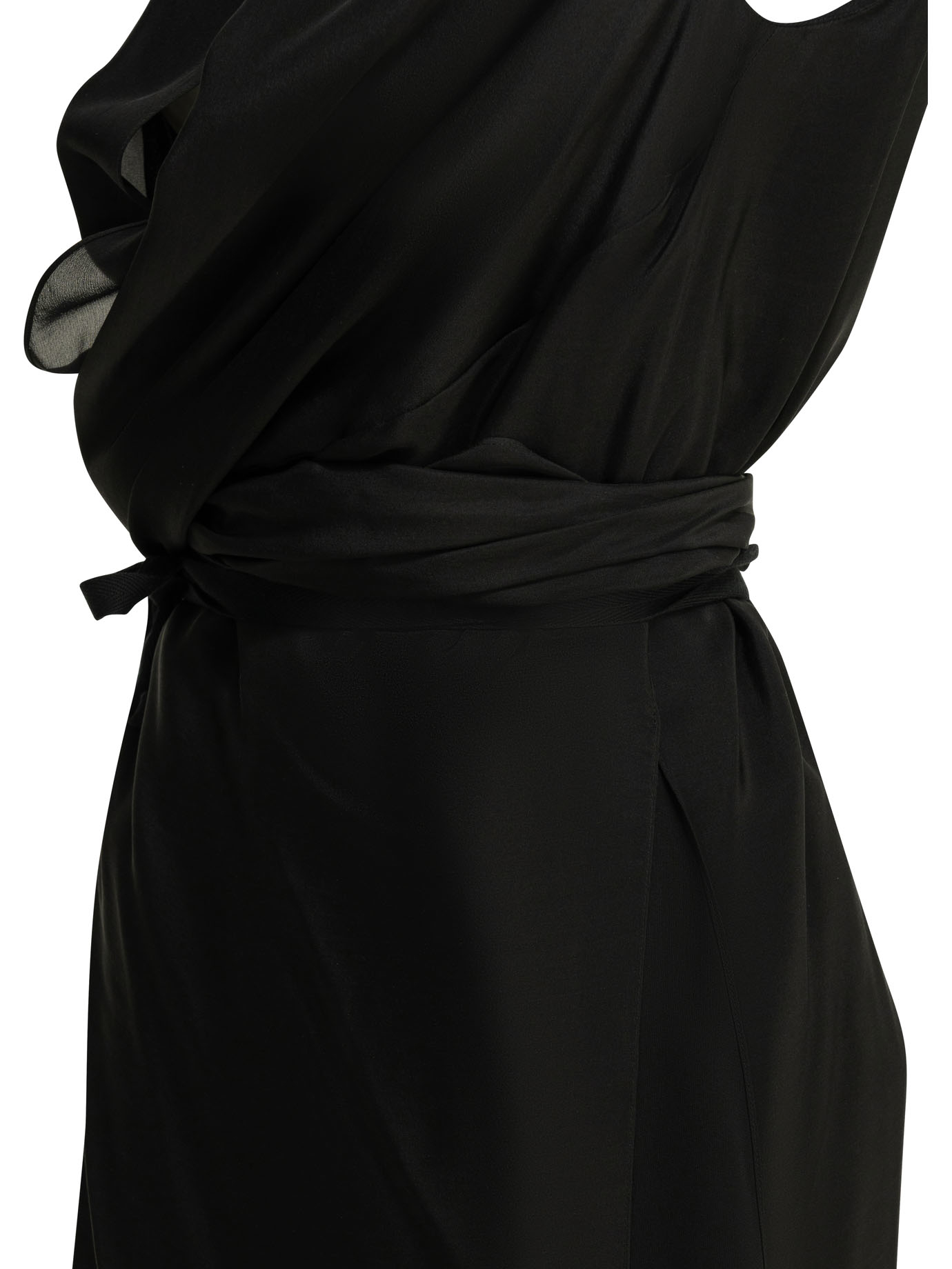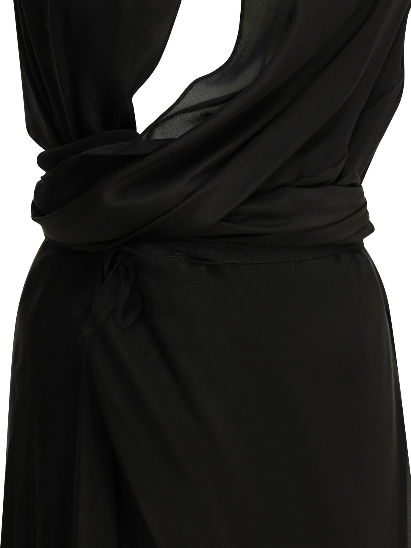 cette pièce de la maison maison margiela pour femme est un vêtement de prêt-à-porter au design sculptural et éthéré conçu pour la saison printemps-été 2026. fabriquée en italie, elle est principalement confectionnée dans une soie légère de première qualité (100 %), offrant une structure fluide, une main lisse et une surface semi-transparente propre aux standards de la haute manufacture italienne maison margiela. sa silhouette se distingue par ses jeux de drapés complexes et sa construction croisée, alliant l’esthétique conceptuelle de la griffe à une élégance sophistiquée idéale pour vos événements de prestige. le design au coloris noir uni présente une construction soignée avec des superpositions de tissus, signature du prestige et de l’identité visuelle de maison margiela. la structure inclut un décolleté plongeant et une jupe midi au mouvement asymétrique, garantissant une silhouette équilibrée, une grande liberté de mouvement et un confort de porter exemplaire. ce modèle allie parfaitement la noblesse des fibres naturelles sélectionnées à une ingénierie de coupe avant-garde de luxe, constituant une pièce de collection indispensable pour votre vestiaire.