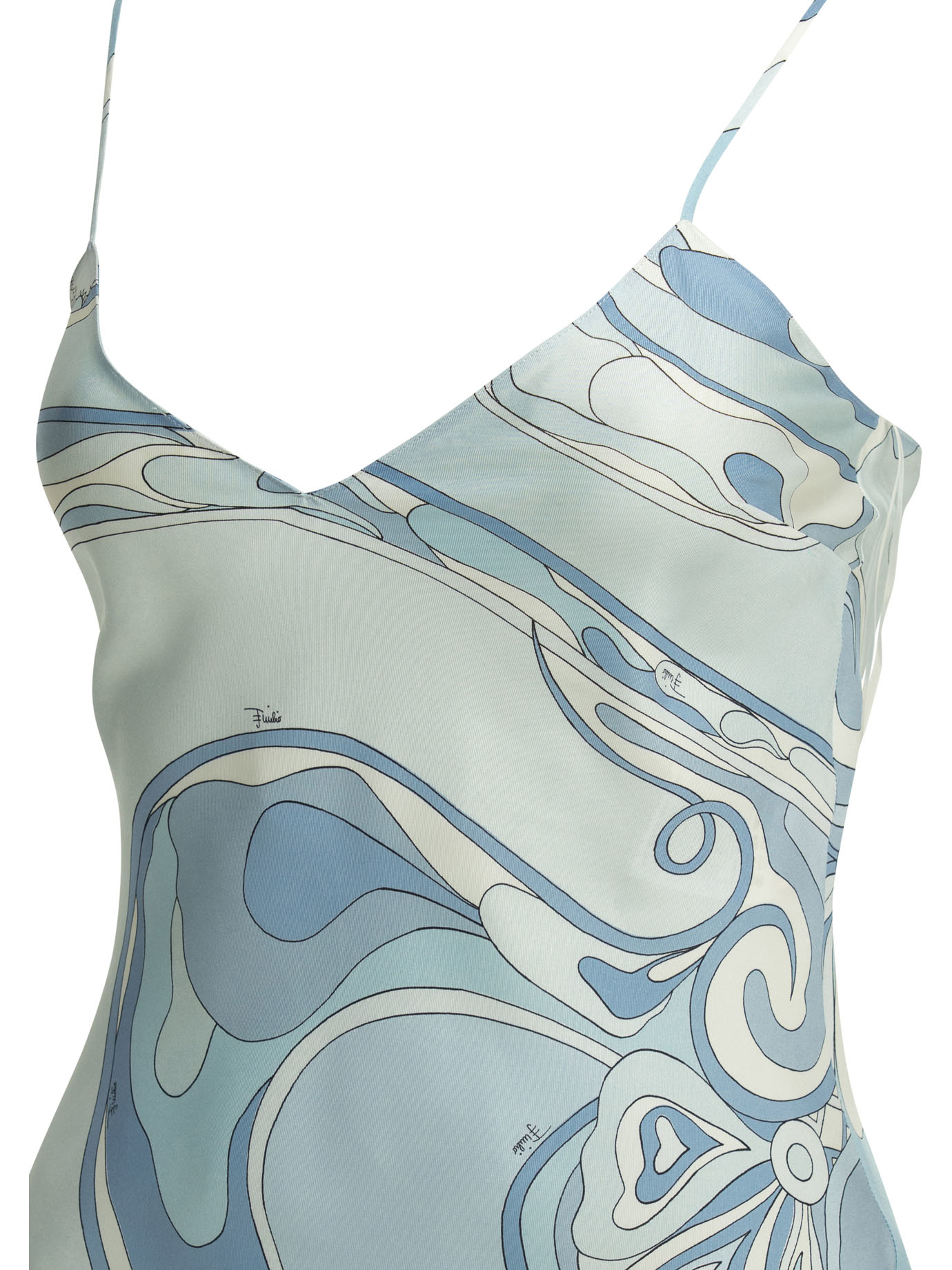 « Pucci » robe femme bleu clair orchidee en pur twill de soie