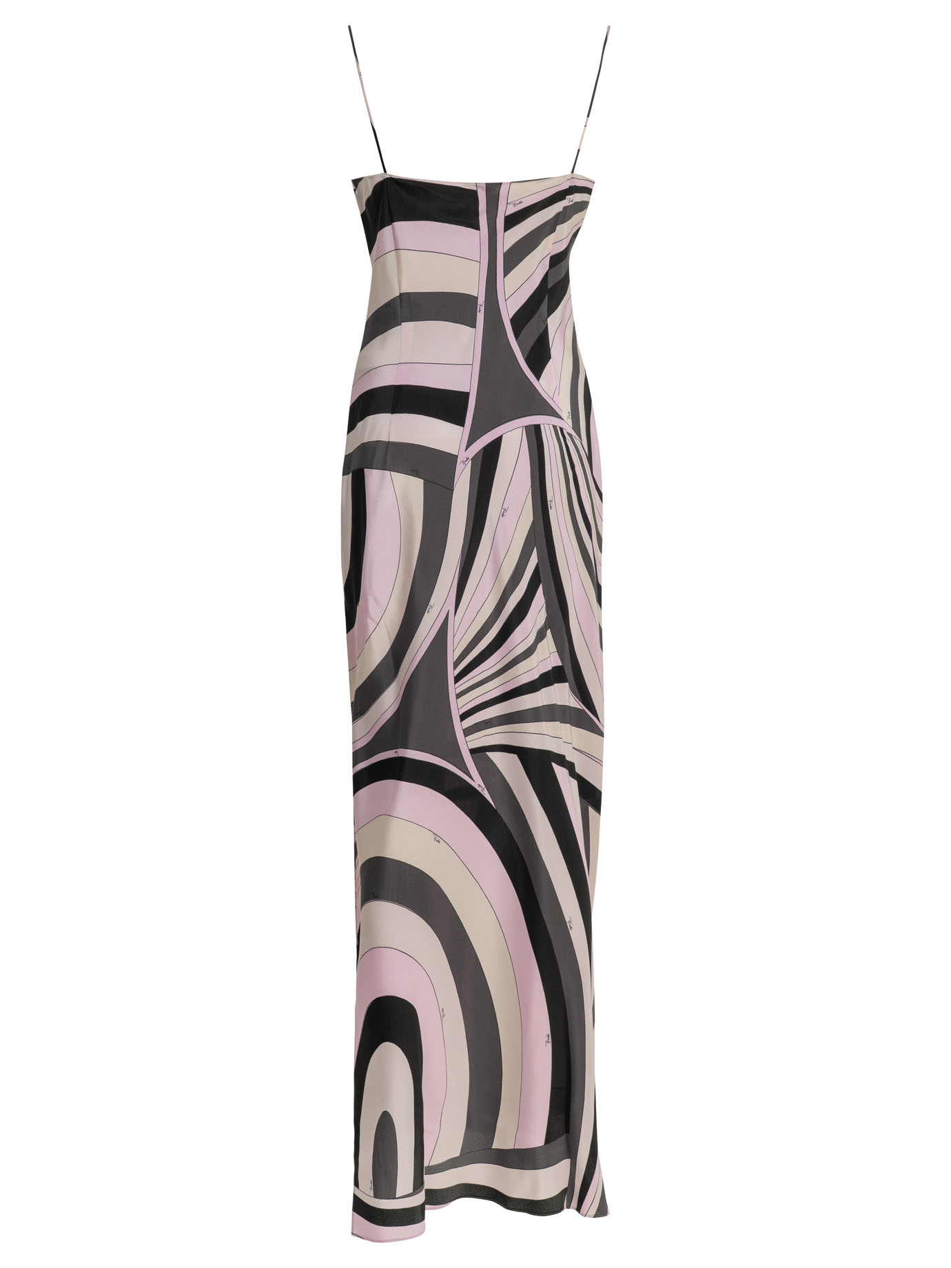 « Pucci » robe longue femme rose en soie à imprimé graphique et fente latérale