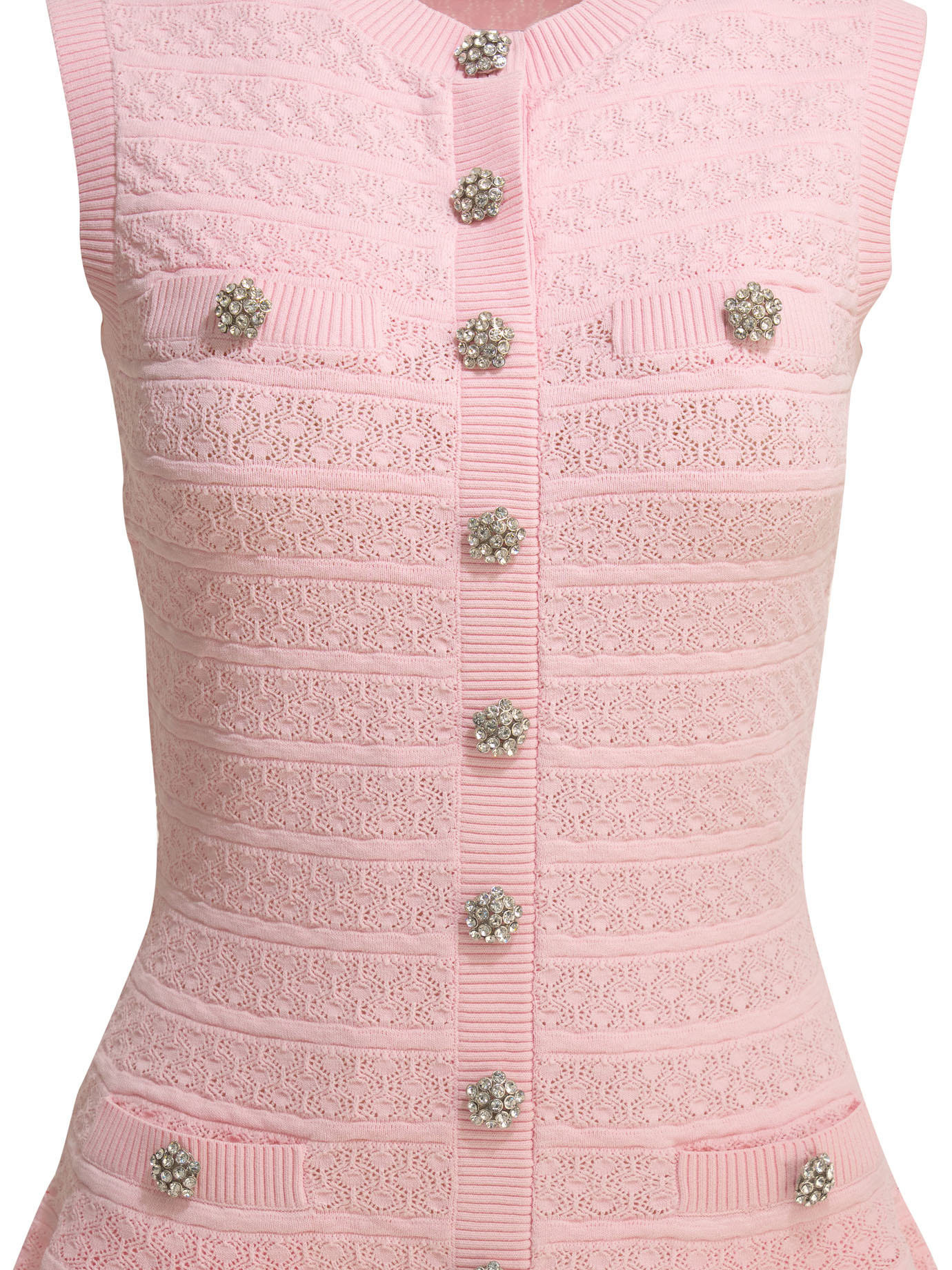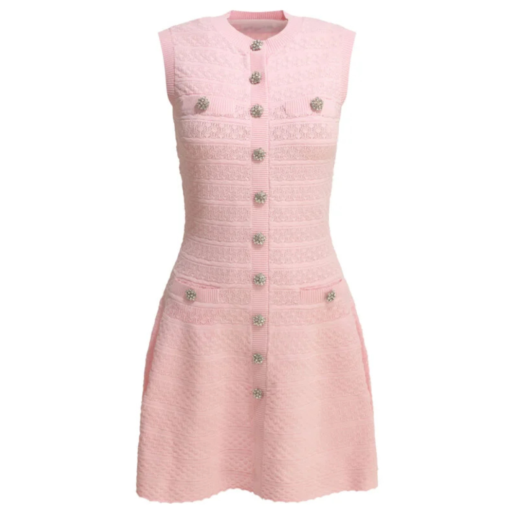 Cette robe courte Self-portrait pour femme séduit par son allure moderne et féminine. Confectionnée en maille ajourée avec une texture perforée, elle présente une coupe slim ajustée sur le haut et une jupe évasée façon patineuse avec taille basse. Son tissu stretch assure un confort optimal tout en épousant la silhouette avec élégance. Les détails en strass et la fermeture boutonnée sur le devant apportent une touche sophistiquée, tandis que les poches intégrées renforcent son aspect pratique.